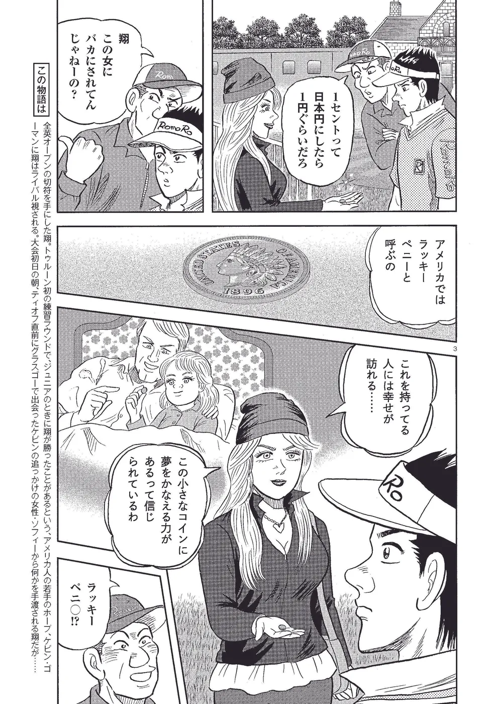 全英オープンの切符を手にした翔。トゥルーン初の練習ラウンドで、ジュニアのときに翔が勝ったことがあるという、アメリカ人の若手のホープ、ケビン・ゴーマンに翔はライバル視される。大会初日の朝、ティオフ直前にグラスゴーで出会ったケビンの追っかけの女性・ソフィーから何かを手渡される翔だが……
