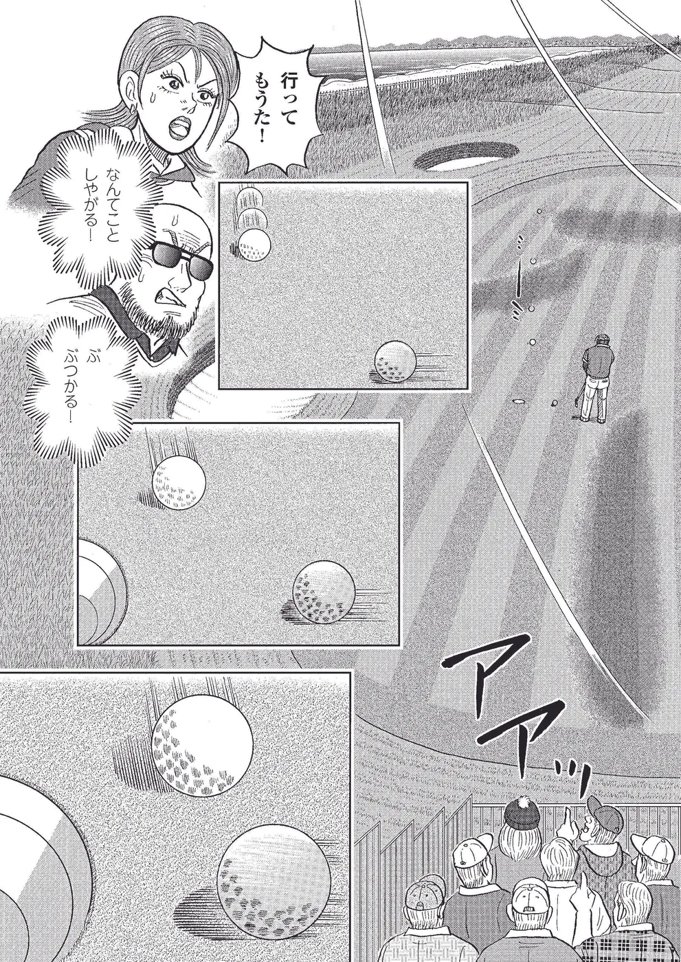 全英オープン大会初日のティオフ前からUSPGAツアー期待の若手、ケビン・ゴーマンと火花を散らす坂本翔。1番ホール、作戦では5番アイアンで手堅くフェアウエーキープのはずが、翔はドライバーを抜き、かっ飛ばしてしまう。打球は風に乗り、ケビンがパッティングするグリーンへと……