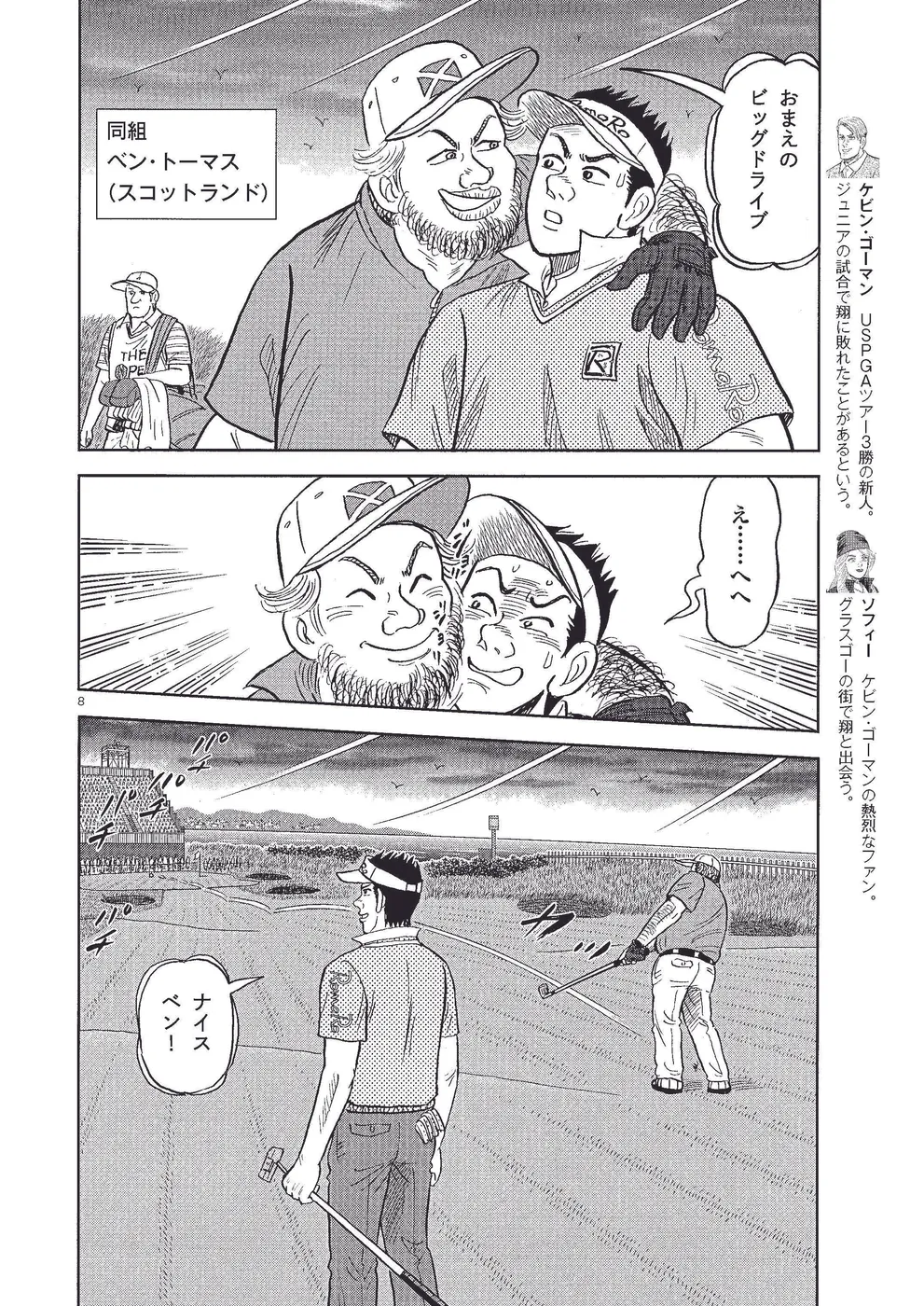 全英オープン大会初日のティオフ前からUSPGAツアー期待の若手、ケビン・ゴーマンと火花を散らす坂本翔。1番ホール、作戦では5番アイアンで手堅くフェアウエーキープのはずが、翔はドライバーを抜き、かっ飛ばしてしまう。打球は風に乗り、ケビンがパッティングするグリーンへと……