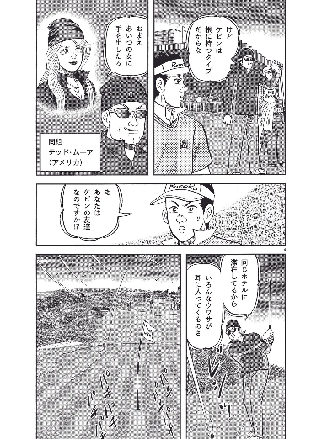 全英オープン大会初日のティオフ前からUSPGAツアー期待の若手、ケビン・ゴーマンと火花を散らす坂本翔。1番ホール、作戦では5番アイアンで手堅くフェアウエーキープのはずが、翔はドライバーを抜き、かっ飛ばしてしまう。打球は風に乗り、ケビンがパッティングするグリーンへと……