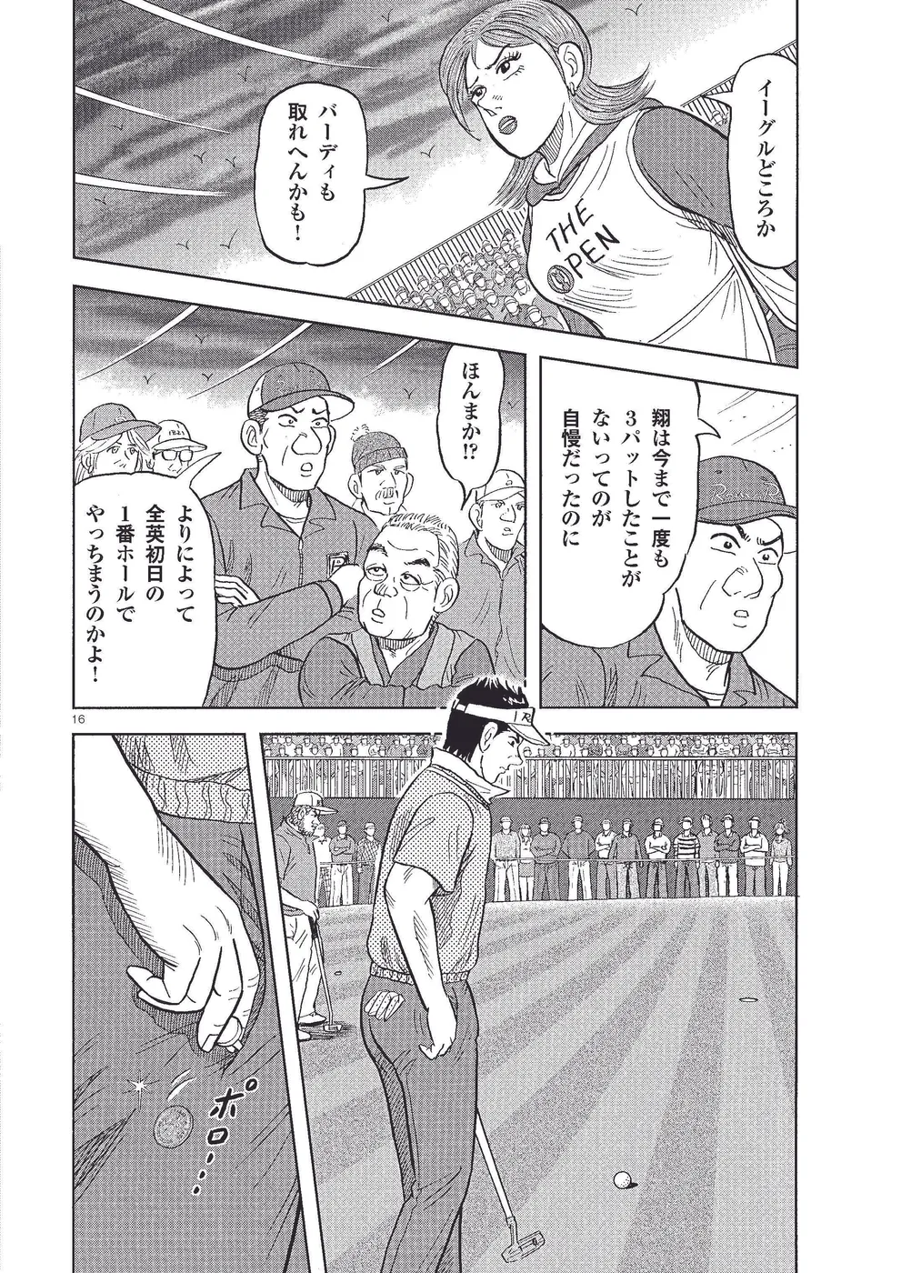 全英オープン大会初日のティオフ前からUSPGAツアー期待の若手、ケビン・ゴーマンと火花を散らす坂本翔。1番ホール、作戦では5番アイアンで手堅くフェアウエーキープのはずが、翔はドライバーを抜き、かっ飛ばしてしまう。打球は風に乗り、ケビンがパッティングするグリーンへと……