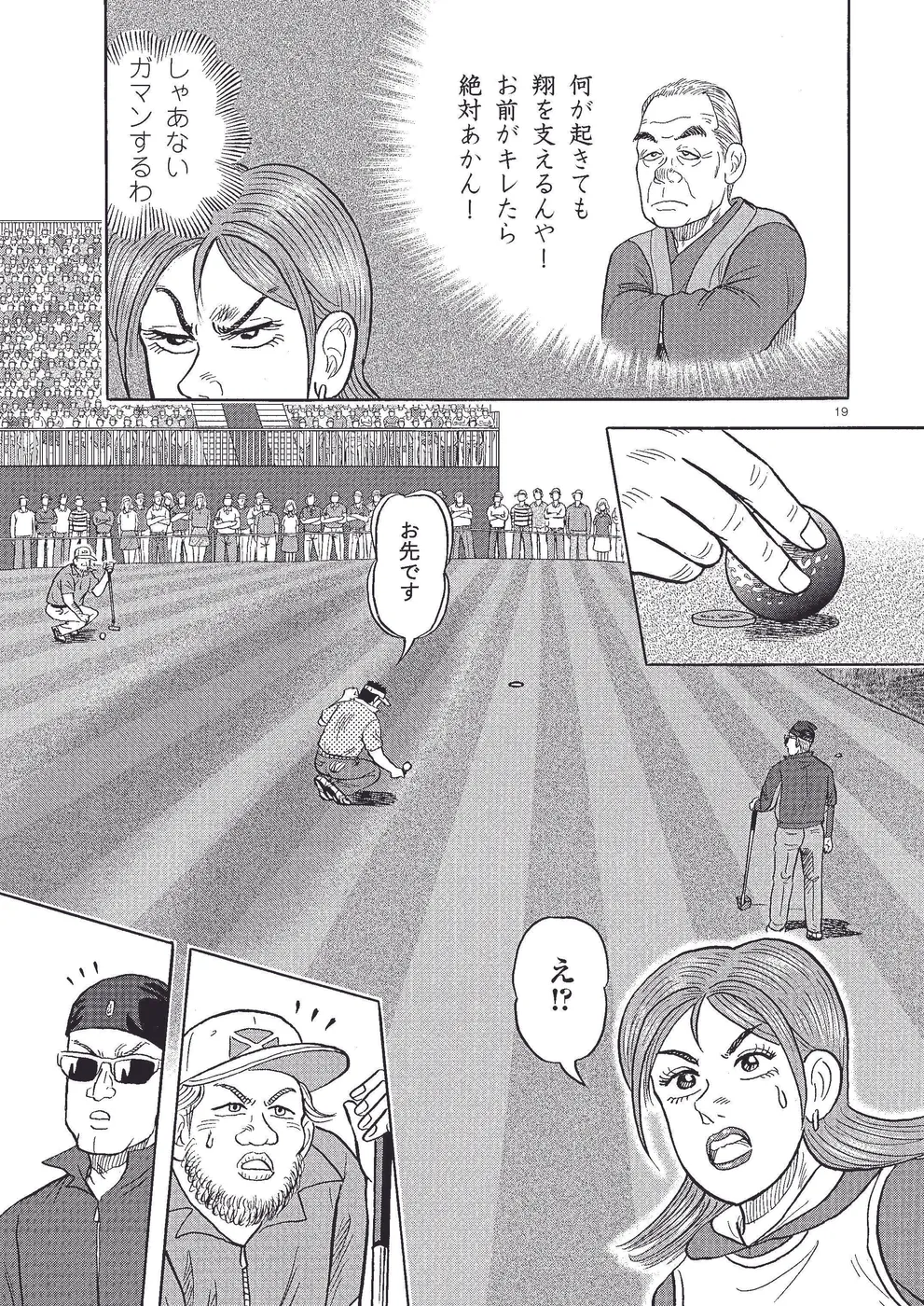 全英オープン大会初日のティオフ前からUSPGAツアー期待の若手、ケビン・ゴーマンと火花を散らす坂本翔。1番ホール、作戦では5番アイアンで手堅くフェアウエーキープのはずが、翔はドライバーを抜き、かっ飛ばしてしまう。打球は風に乗り、ケビンがパッティングするグリーンへと……
