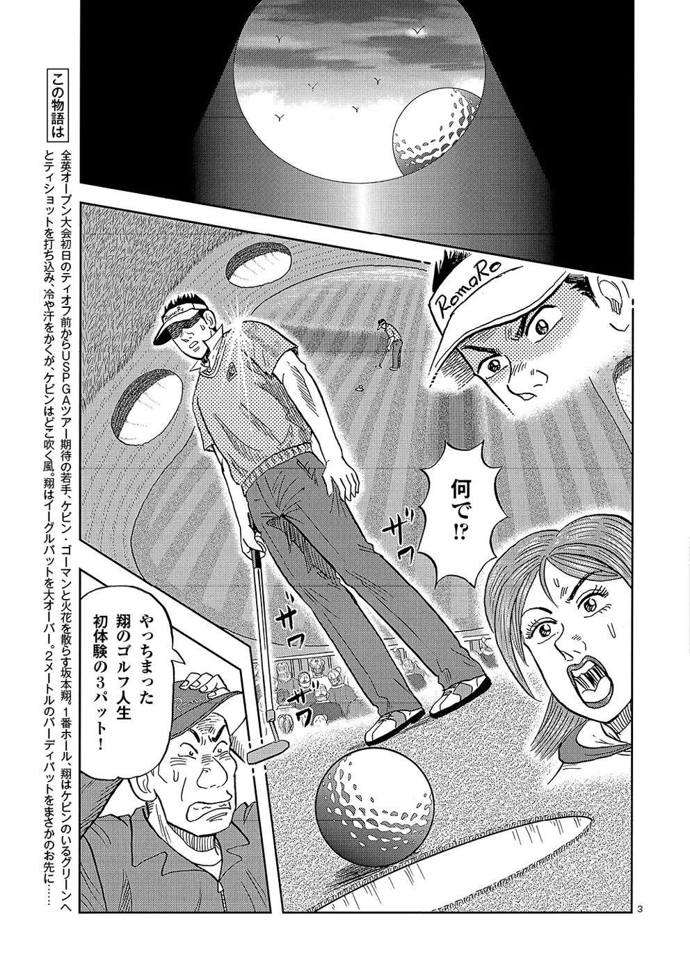 全英オープン大会初日のティオフ前からUSPGAツアー期待の若手、ケビン・ゴーマンと火花を散らす坂本翔。1番ホール、翔はケビンのいるグリーンへとティショットを打ち込み、冷や汗をかくが、ケビンはどこ吹く風。翔はイーグルパットを大オーバー。2メートルのバーディパットをまさかのお先に……