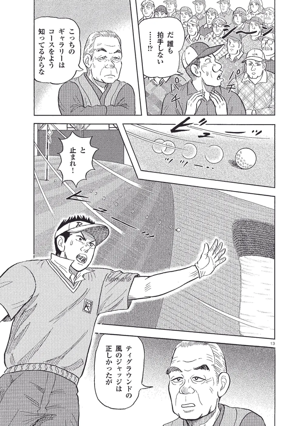 全英オープン、大会初日。ティオフ前からUSPGAツアー期待の若手、ケビン・ゴーマンと火花を散らす坂本翔。フロントナイン全ホールバーディを狙う翔は、ソフィーからもらったコインの〝ラッキーペニー〟をマークに使う。すると怒濤の快進撃でトップに躍り出るも、どこかで落としてしまい……