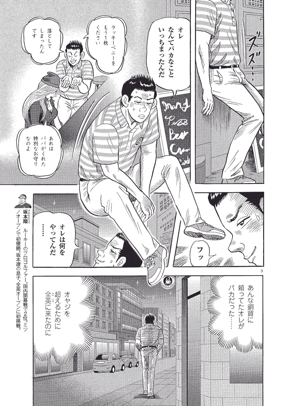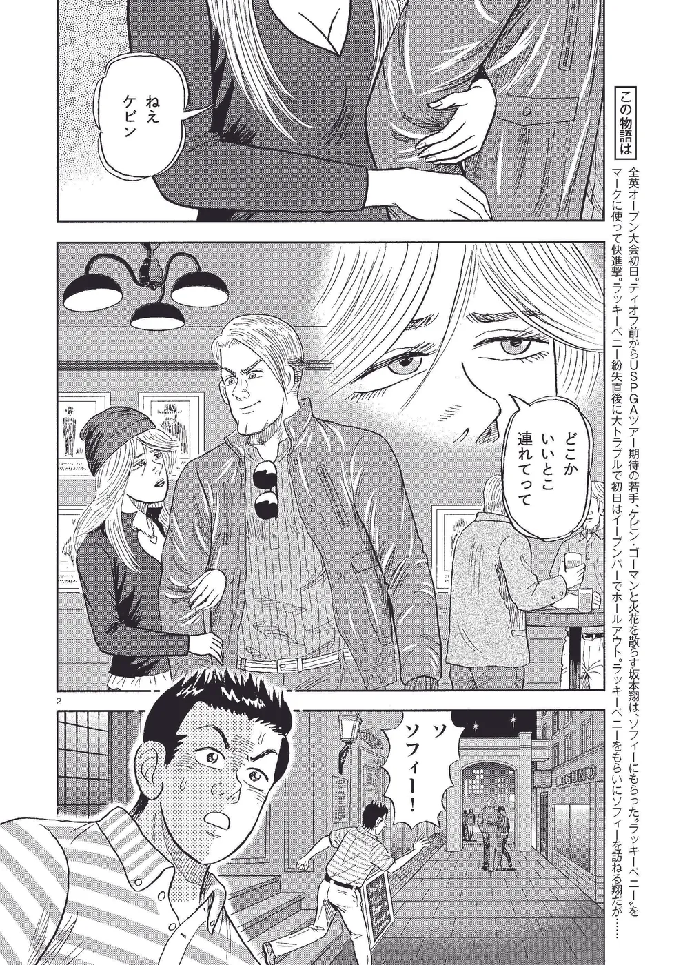 全英オープン大会初日。ティオフ前からUSPGAツアー期待の若手、ケビン・ゴーマンと火花を散らす坂本翔は、ソフィーにもらった〝ラッキーペニー〟をマークに使って快進撃。ラッキーペニー紛失直後に大トラブルで初日はイーブンパーでホールアウト。ラッキーペニーをもらいにソフィーを訪ねる翔だが……