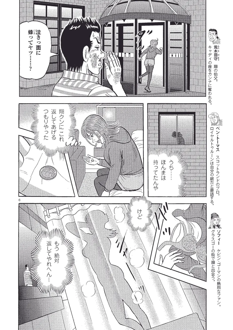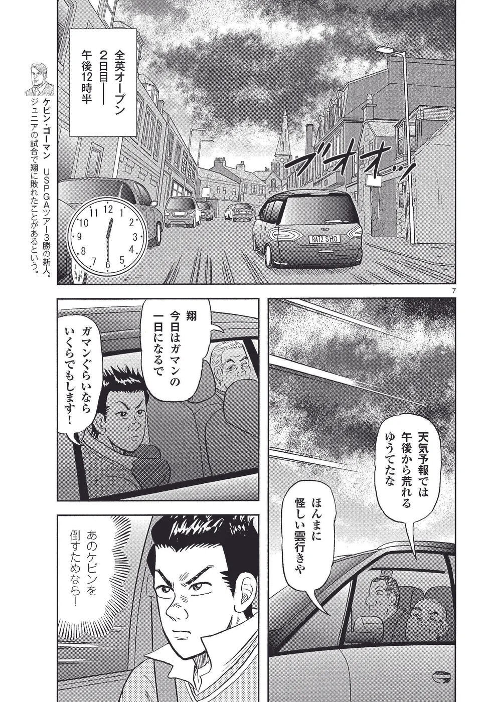 全英オープン大会初日。ティオフ前からUSPGAツアー期待の若手、ケビン・ゴーマンと火花を散らす坂本翔は、ソフィーにもらった〝ラッキーペニー〟をマークに使って快進撃。ラッキーペニー紛失直後に大トラブルで初日はイーブンパーでホールアウト。ラッキーペニーをもらいにソフィーを訪ねる翔だが……