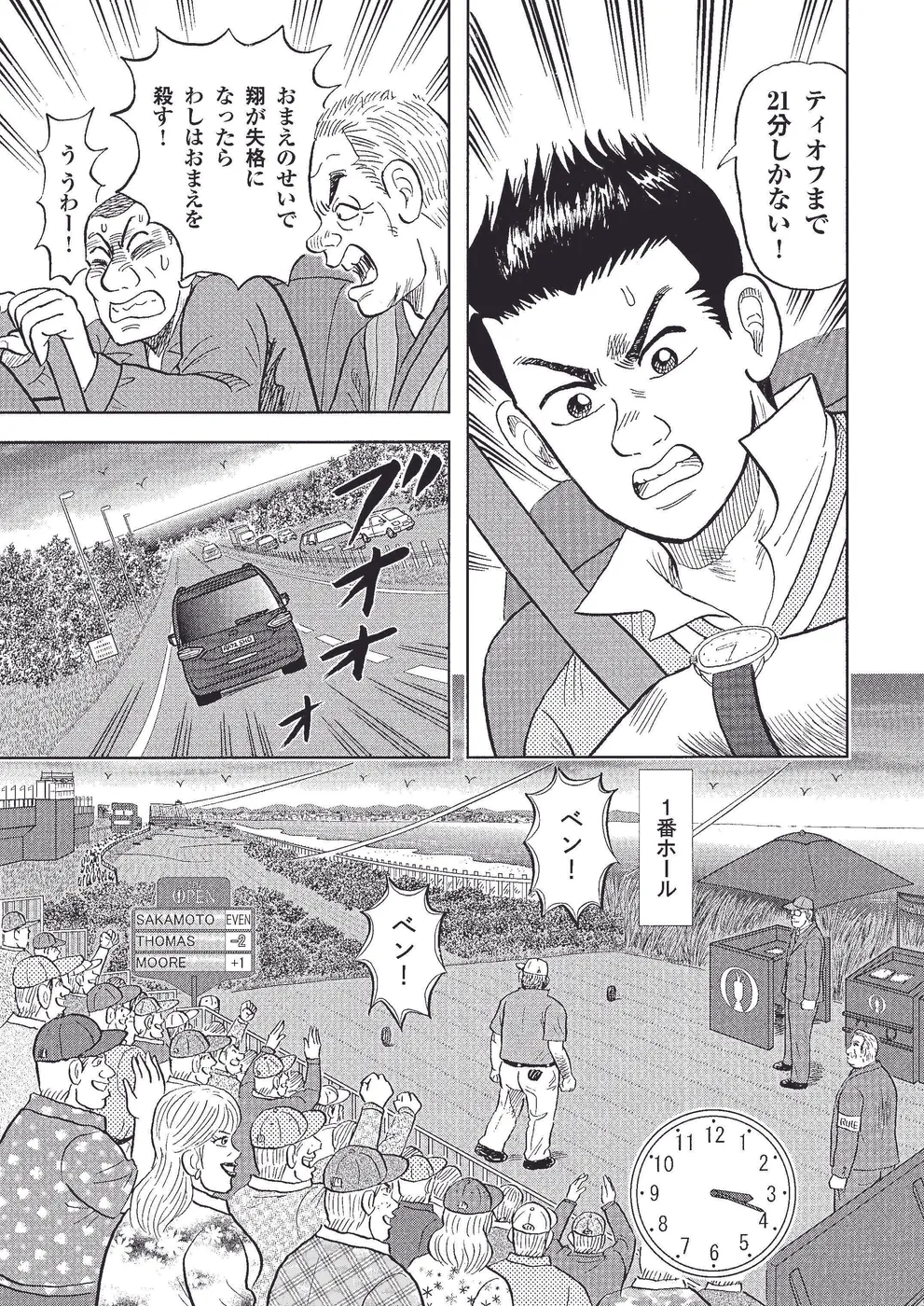 全英オープン大会初日。ティオフ前からUSPGAツアー期待の若手、ケビン・ゴーマンと火花を散らす坂本翔は、ソフィーにもらった〝ラッキーペニー〟をマークに使って快進撃。ラッキーペニー紛失直後に大トラブルで初日はイーブンパーでホールアウト。ラッキーペニーをもらいにソフィーを訪ねる翔だが……