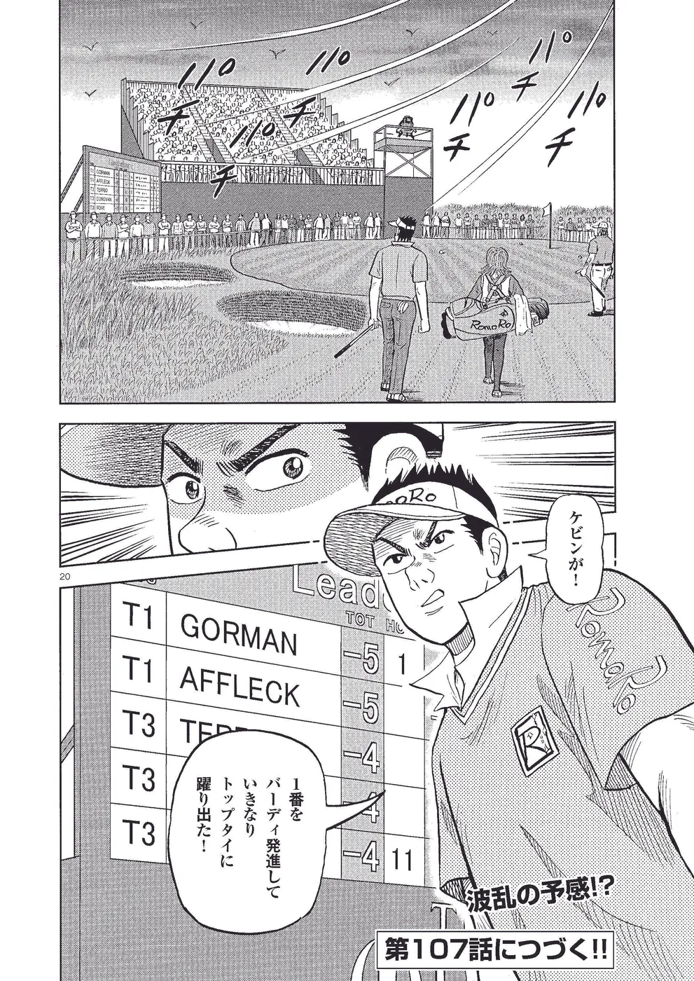 全英オープン大会初日、ケビン・ゴーマンと火花を散らす坂本翔。翔は前半、快進撃でトップに躍り出るも、後半失速しイーブンパーの51位タイでホールアウト。2日目、グラスゴーから会場へ向かう際、運転手の守おじさんが道に迷い、遅刻ギリギリでティオフした翔。だが、ボールは大きく左へ曲がり……