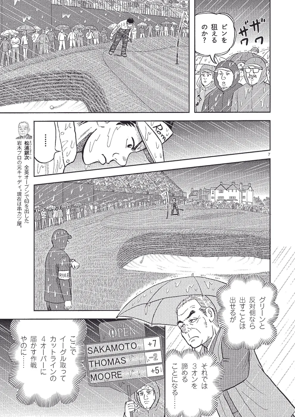 全英オープン初出場の坂本翔は、USPGAツアー期待の星、ケビン・ゴーマンと火花を散らす。2日目、51位タイでスタートの翔はずるずるとスコアを落とす。カットラインは4オーバー予想の中、7オーバーで16番パー5を迎える。ティショットを短いクラブで刻み、セカンドは直ドラで2オンを狙った翔だが……