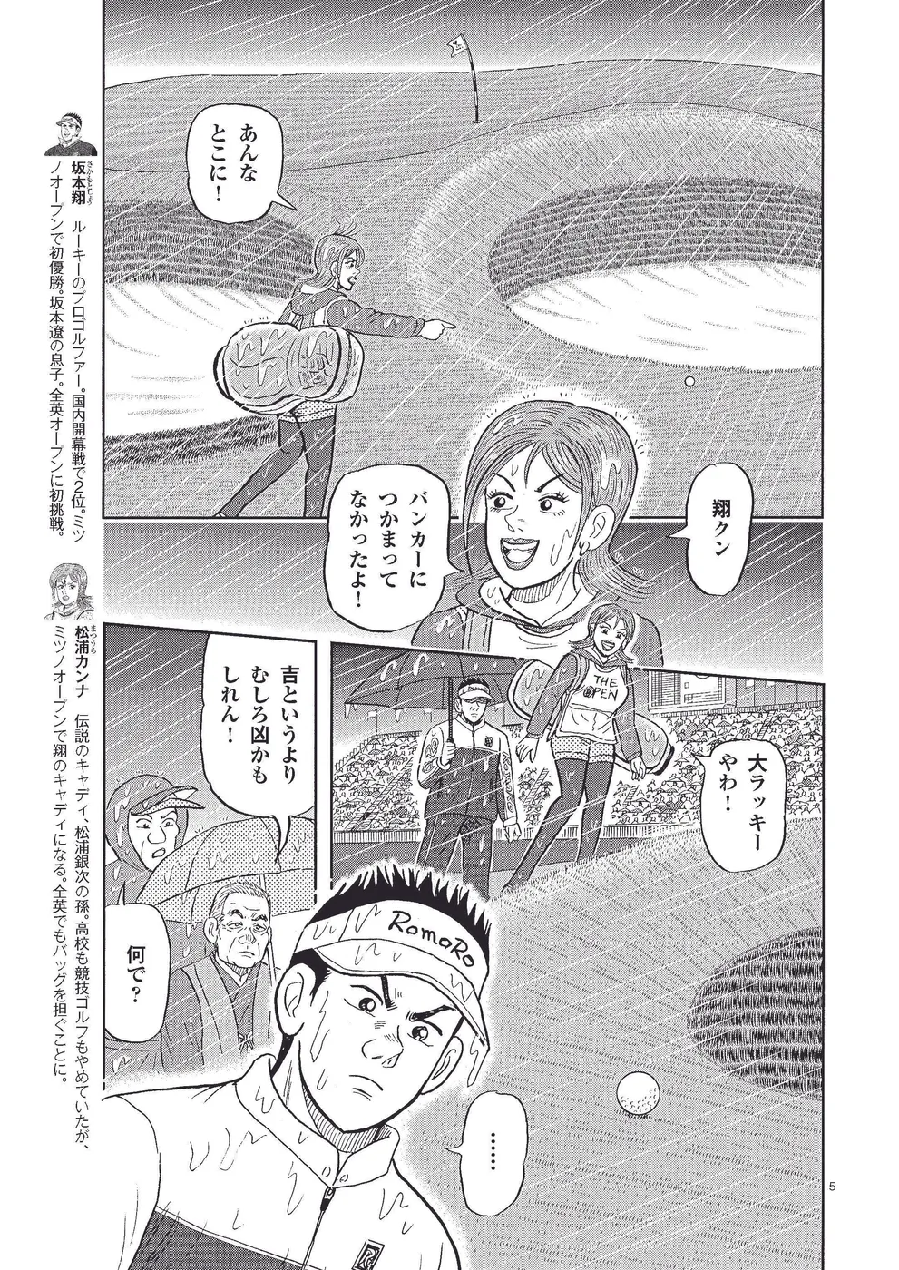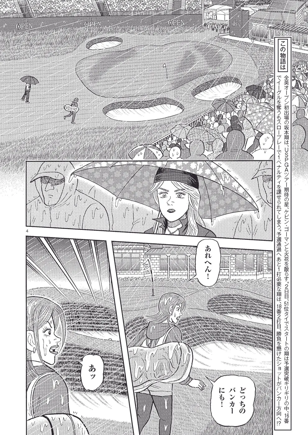 全英オープン初出場の坂本翔は、USPGAツアー期待の星、ケビン・ゴーマンと火花を散らす。2日目、 51位タイでスタートの翔は予選突破ギリギリの中、16番でイーグルを奪うもスロープレーで1ペナルティを課せられてしまう。予選通過へあと1打必要な翔は、18番2打目、勝負を懸けたショットがバンカー方向へ!?