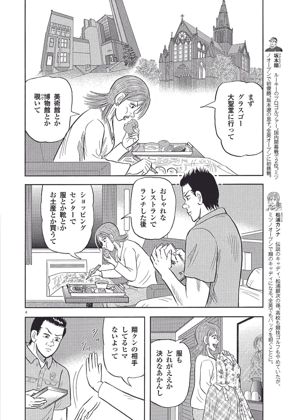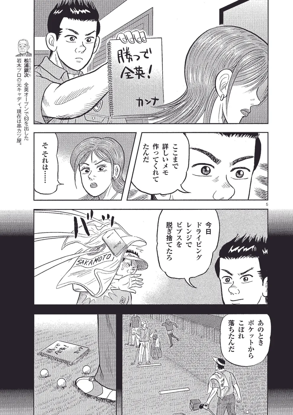 全英オープン初出場の坂本翔は、USPGAツアー期待の星、ケビン・ゴーマンと火花を散らす。2日目、激しい暴風雨で苦戦した翔は、ぎりぎりで予選突破を果たす。しかし、キャディのカンナとは、深い溝ができてしまっていた! 銀爺の過去の後悔話を聞き、ある決意を持ってカンナの部屋を訪ねた翔だが……