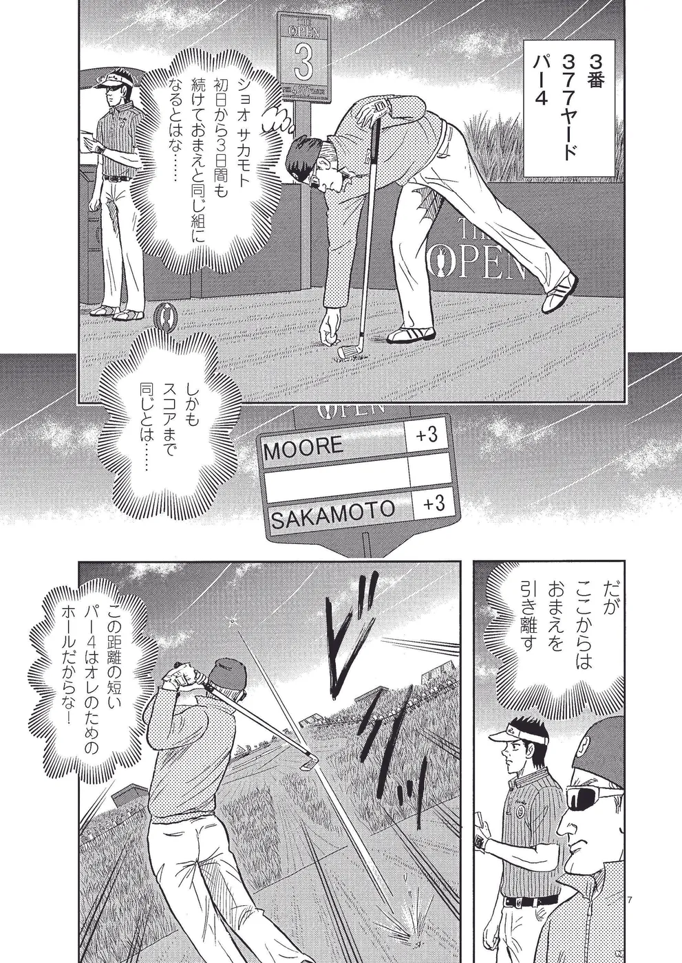 全英オープン初出場の坂本翔は、USPGAツアー期待の星、ケビン・ゴーマンと火花を散らす。2日目、激しい暴風雨で苦戦した翔は、ぎりぎりで予選突破を果たす。その夜、ぎくしゃくしていたキャディのカンナと和解して、二人で優勝を目指すと誓い合う。決勝ラウンド1番ホールで、イーグルを狙う翔だが……