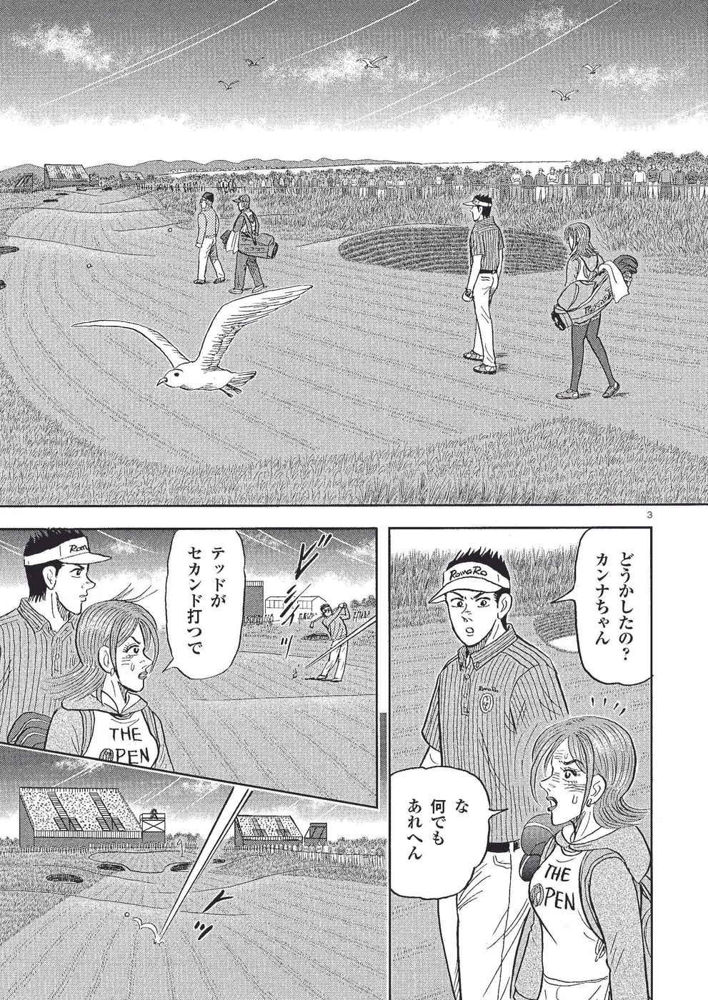 全英オープン初出場の坂本翔は、USPGAツアー期待の星、ケビン・ゴーマンと火花を散らす。2日目、激しい暴風雨で苦戦した翔は、ぎりぎりで予選突破を果たす。その夜、ぎくしゃくしていたキャディのカンナと和解して、二人で優勝を目指すと誓い合う。3日目、好調な滑り出しを見せた翔だが……