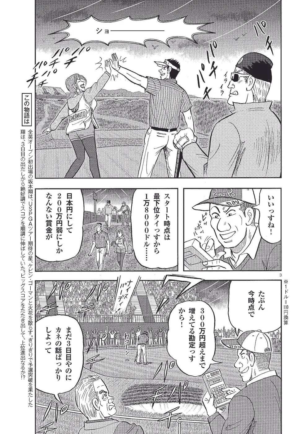 全英オープン初出場の坂本翔は、USPGAツアー期待の星、ケビン・ゴーマンと火花を散らす。ぎりぎりで予選突破を果たした翔は、3日目の出だしから絶好調でスコアを順調に伸ばしていた。ビッグスコアをたたき出して、上位進出なるか!?