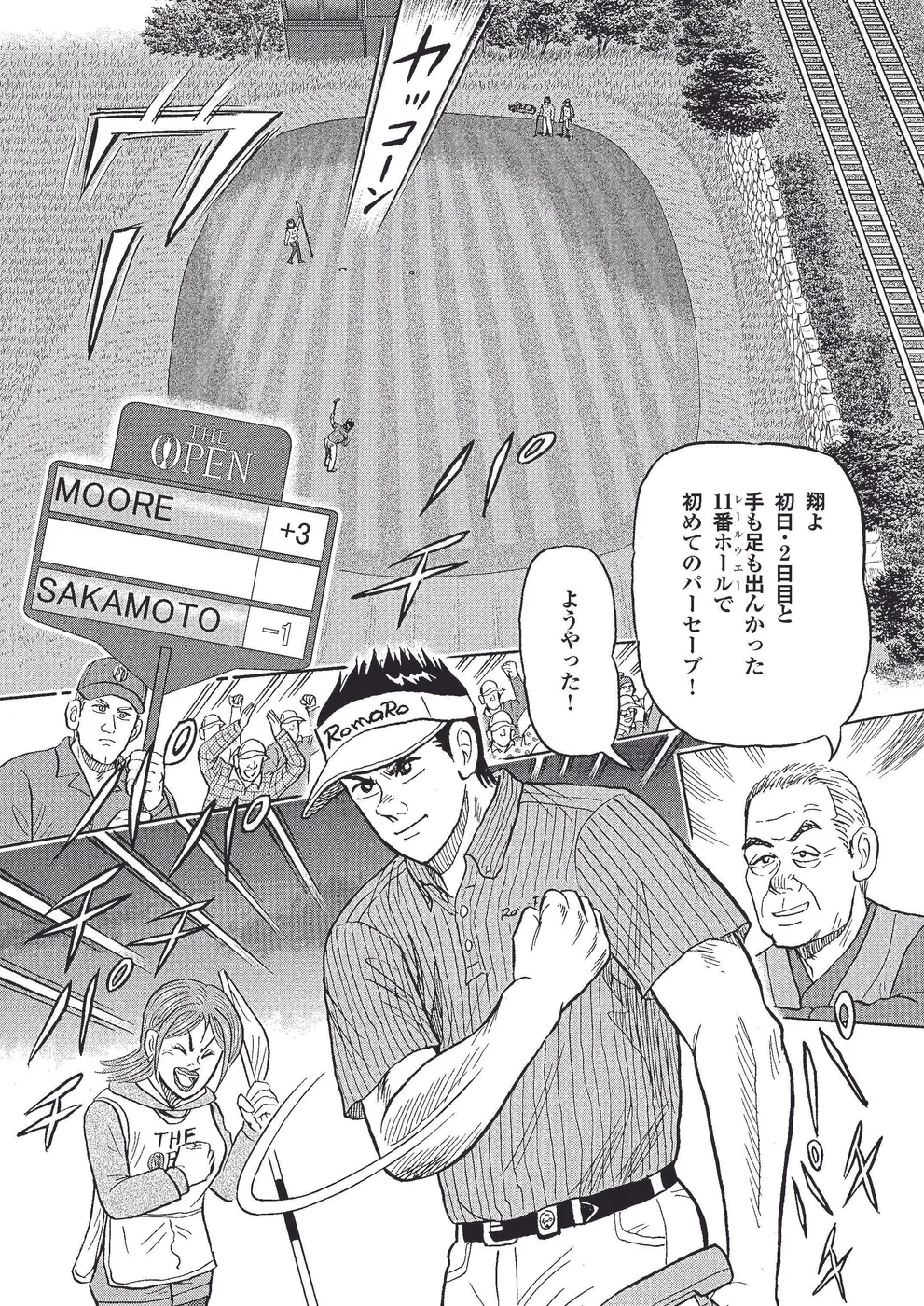 全英オープン初出場の坂本翔は、USPGAツアー期待の星、ケビン・ゴーマンと火花を散らす。ぎりぎりで予選突破を果たした翔は、3日目の出だしから絶好調でスコアを順調に伸ばしていた。上位進出をうかがう翔だが、2日間オーバーパーの11番の名物ホール、通称「レールウエー」を攻略できるか!?