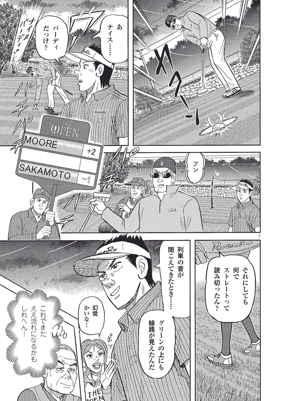 全英オープン初出場の坂本翔は、USPGAツアー期待の星、ケビン・ゴーマンと火花を散らす。ぎりぎりで予選突破を果たした翔は、3日目の出だしから絶好調でスコアを順調に伸ばしていた。上位進出をうかがう翔だが、2日間オーバーパーの11番の名物ホール、通称「レールウエー」を攻略できるか!?