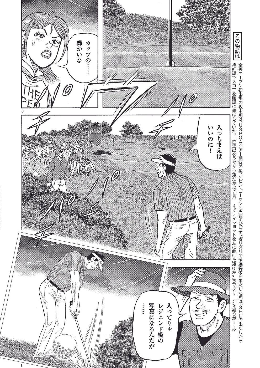 全英オープン初出場の坂本翔は、USPGAツアー期待の星、ケビン・ゴーマンと火花を散らす。ぎりぎりで予選突破を果たした翔は、3日目の出だしから絶好調でスコアを順調に伸ばしていた。上位進出をうかがう翔だが、12番パー4でティショットを左に曲げた翔は左打ちでグリーンを狙うが……!?