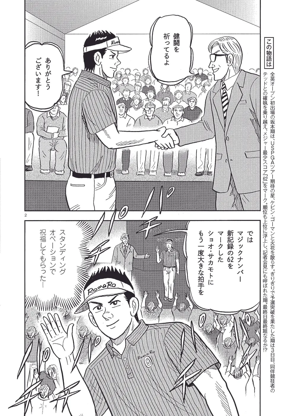 全英オープン初出場の坂本翔は、USPGAツアー期待の星、ケビン・ゴーマンと火花を散らす。ぎりぎりで予選突破を果たした翔は3日目、同伴競技者のテッドとの確執を乗り越え、メジャー最少スコア「62」をマーク。順位も上位に浮上し、記者会見にも呼ばれた翔。最終日最終組なるか!?