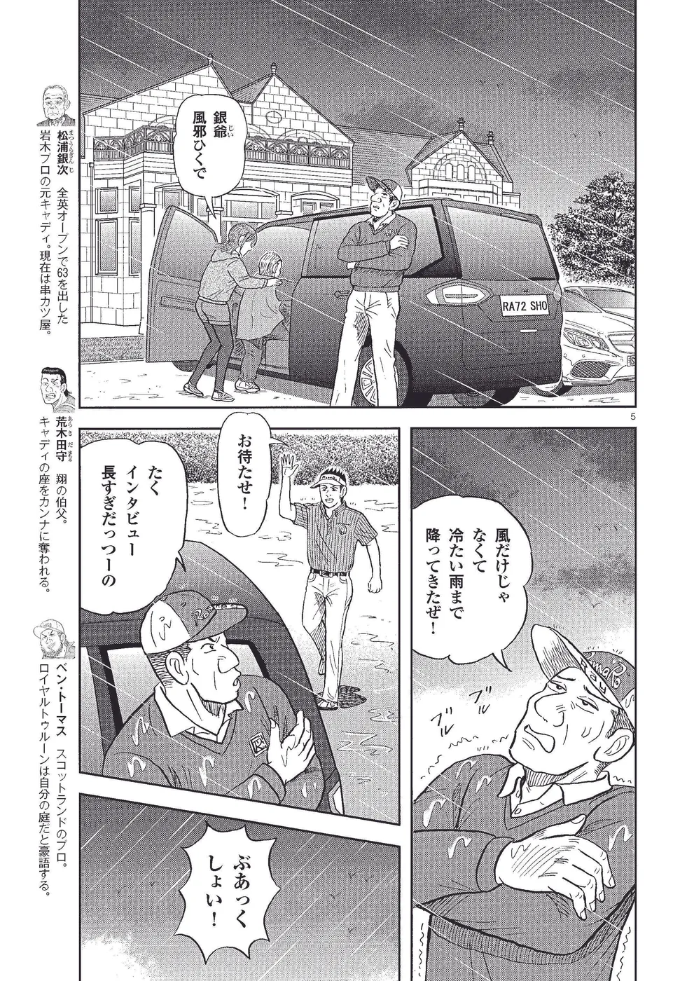 全英オープン初出場の坂本翔は、USPGAツアー期待の星、ケビン・ゴーマンと火花を散らす。ぎりぎりで予選突破を果たした翔は3日目、同伴競技者のテッドとの確執を乗り越え、メジャー最少スコア「62」をマーク。順位も上位に浮上し、記者会見にも呼ばれた翔。最終日最終組なるか!?