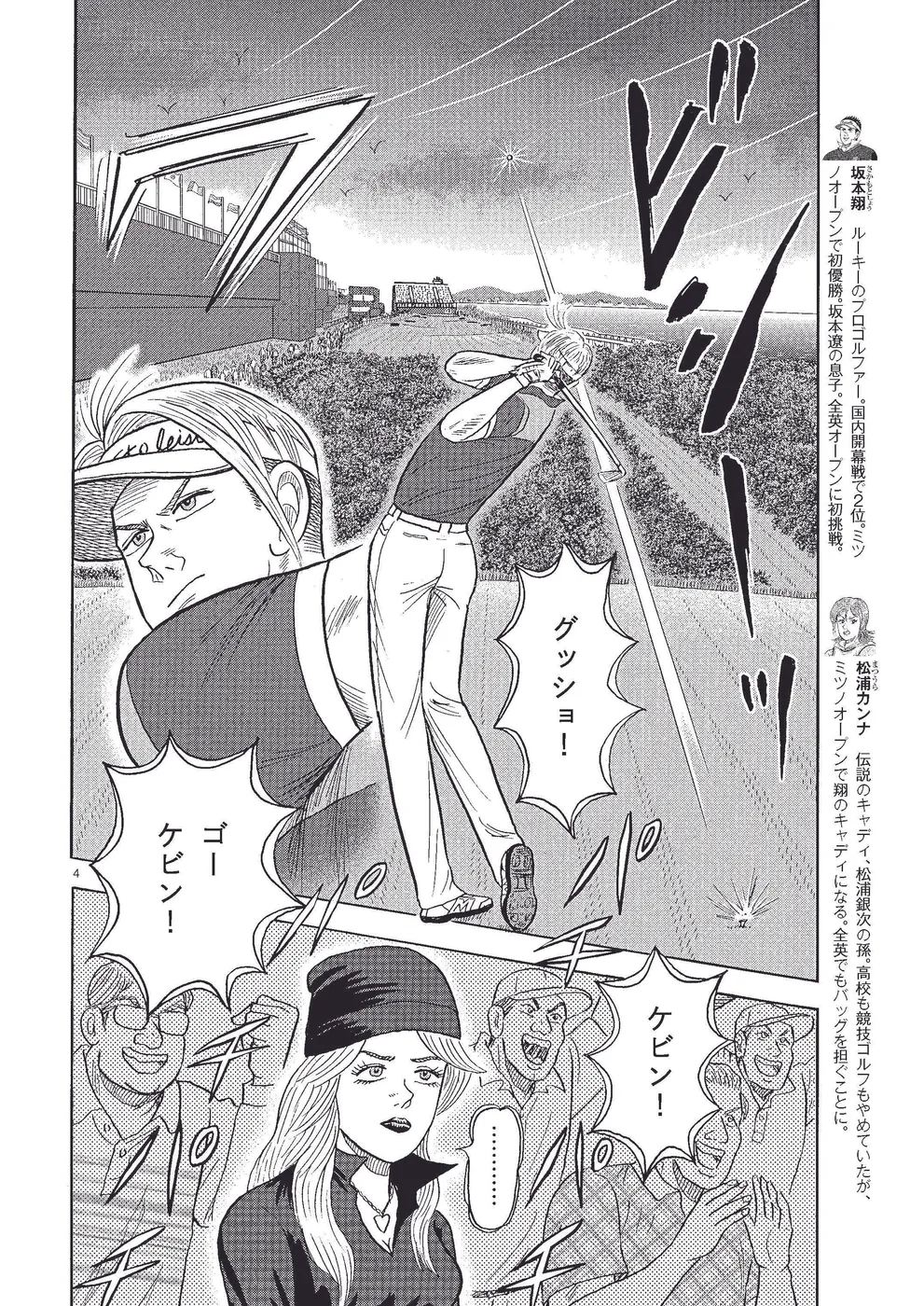 全英オープン初出場の坂本翔は、USPGAツアー期待の星、ケビン・ゴーマンと火花を散らす。ぎりぎりで予選突破を果たした翔は3日目、同伴競技者のテッドとの確執を乗り越え、メジャー最少スコア「62」をマーク。順位も上位に浮上し、記者会見にも呼ばれた翔。最終日最終組なるか!?
