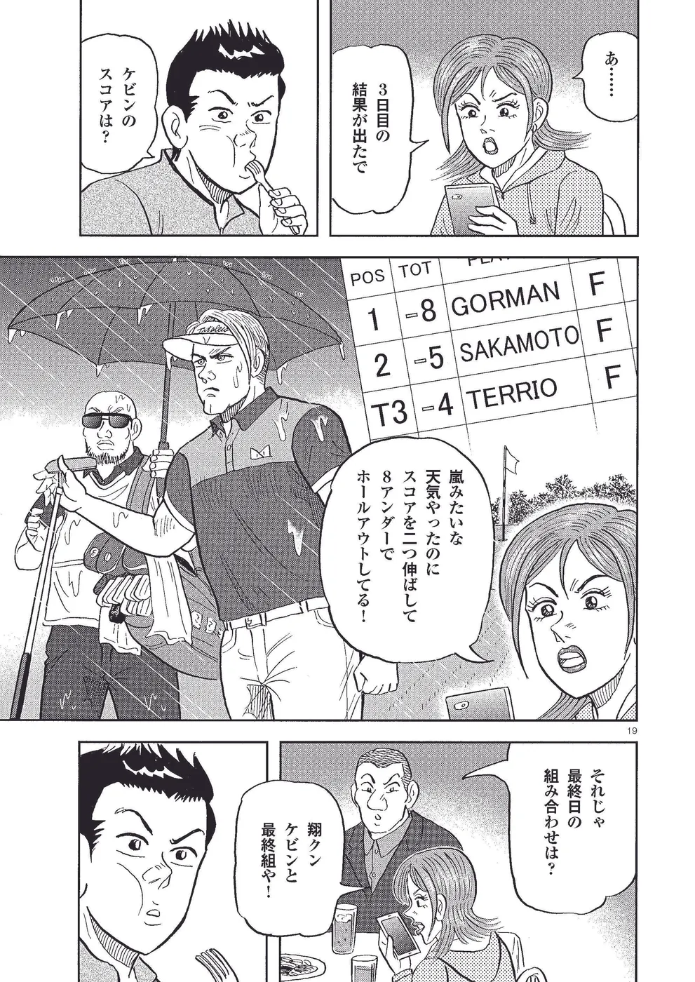 全英オープン初出場の坂本翔は、USPGAツアー期待の星、ケビン・ゴーマンと火花を散らす。ぎりぎりで予選突破を果たした翔は3日目、同伴競技者のテッドとの確執を乗り越え、メジャー最少スコア「62」をマーク。順位も上位に浮上し、記者会見にも呼ばれた翔。最終日最終組なるか!?