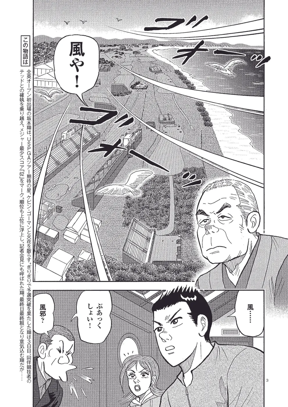 全英オープン初出場の坂本翔は、USPGAツアー期待の星、ケビン・ゴーマンと火花を散らす。ぎりぎりで予選突破を果たした翔は3日目、同伴競技者のテッドとの確執を乗り越え、メジャー最少スコア「62」をマーク。順位も上位に浮上し、記者会見にも呼ばれた翔。最終日最終組となり意気込む翔だが……