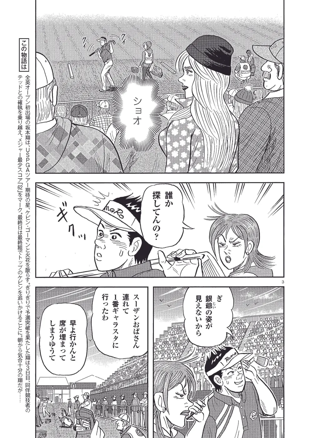全英オープン初出場の坂本翔は、USPGAツアー期待の星、ケビン・ゴーマンと火花を散らす。ぎりぎりで予選突破を果たした翔は3日目、同伴競技者のテッドとの確執を乗り越え、メジャー最少スコア「62」をマーク。最終日は最終組でトップのケビンを追いかけることに。朝から気合十分の翔だが……