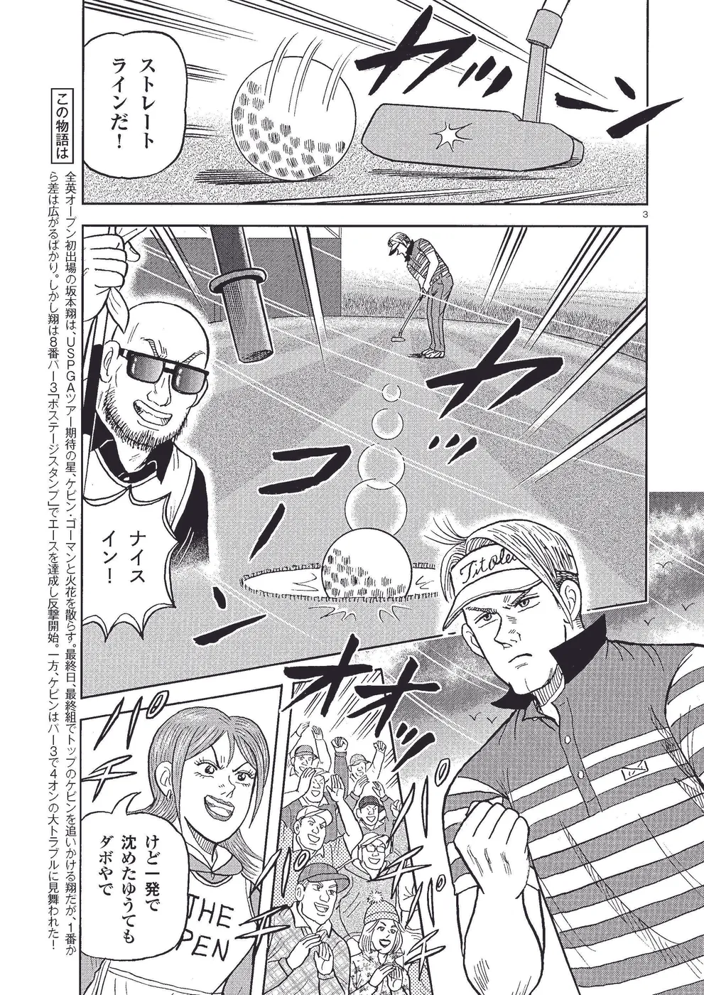 全英オープン初出場の坂本翔は、USPGAツアー期待の星、ケビン・ゴーマンと火花を散らす。最終日、最終組でトップのケビンを追いかける翔だが、1番から差は広がるばかり。しかし翔は8番パー3「ポステージスタンプ」でエースを達成し反撃開始。一方、ケビンはパー3で4オンの大トラブルに見舞われた!