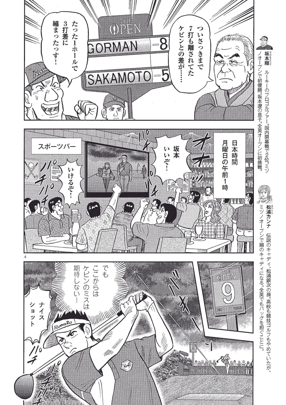 全英オープン初出場の坂本翔は、USPGAツアー期待の星、ケビン・ゴーマンと火花を散らす。最終日、最終組でトップのケビンを追いかける翔だが、1番から差は広がるばかり。しかし翔は8番パー3「ポステージスタンプ」でエースを達成し反撃開始。一方、ケビンはパー3で4オンの大トラブルに見舞われた!