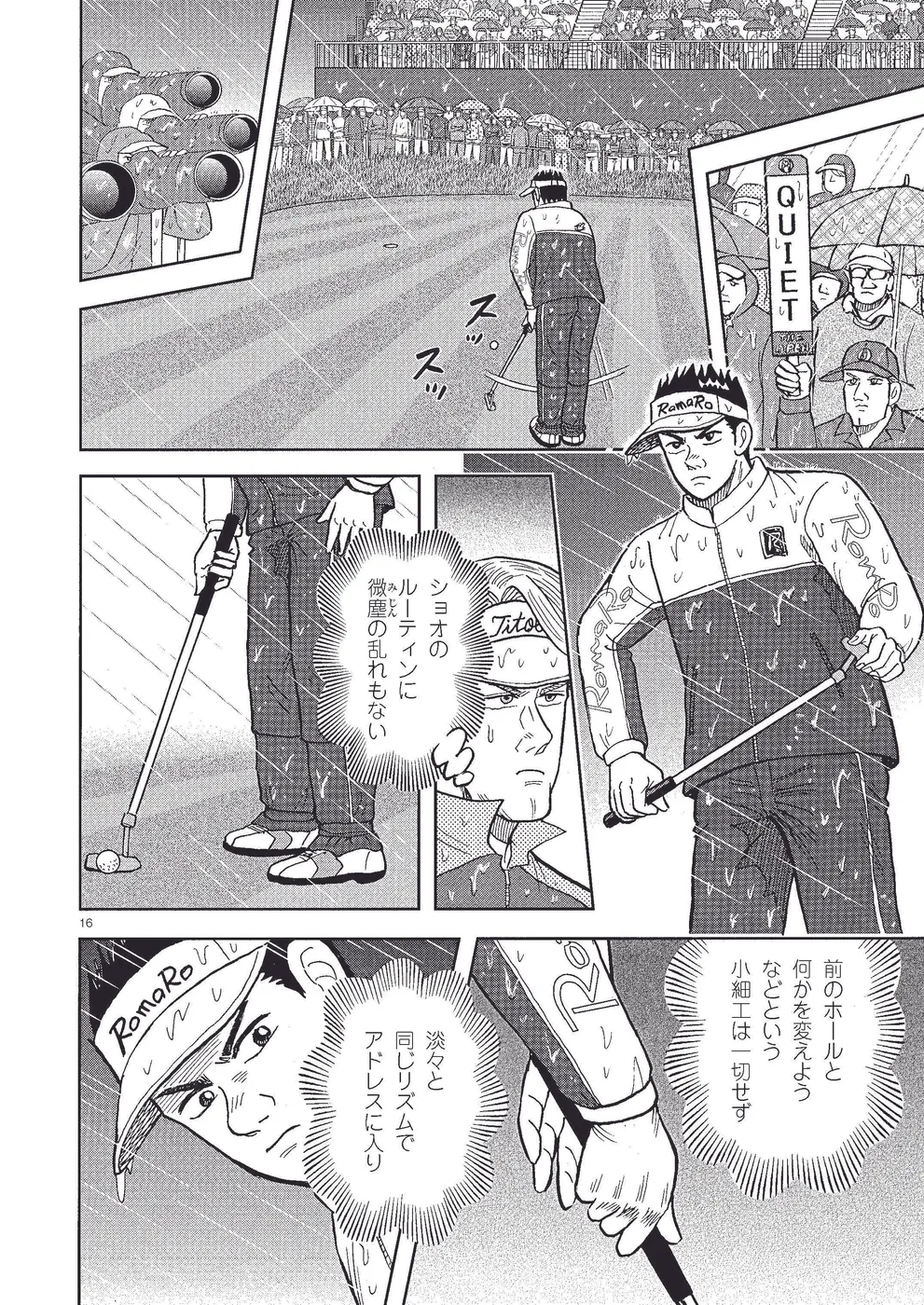 全英オープン初出場の坂本翔は、USPGAツアー期待の星、ケビン・ゴーマンと火花を散らす。最終日、最終組でトップのケビンを追いかける翔だが、序盤は差が広がるばかり。翔は8番のホールインワンから反撃を開始、14番パー3で飛行機の離陸音にも動ぜずバーディを奪い、ついにトップのケビンに並んだ!