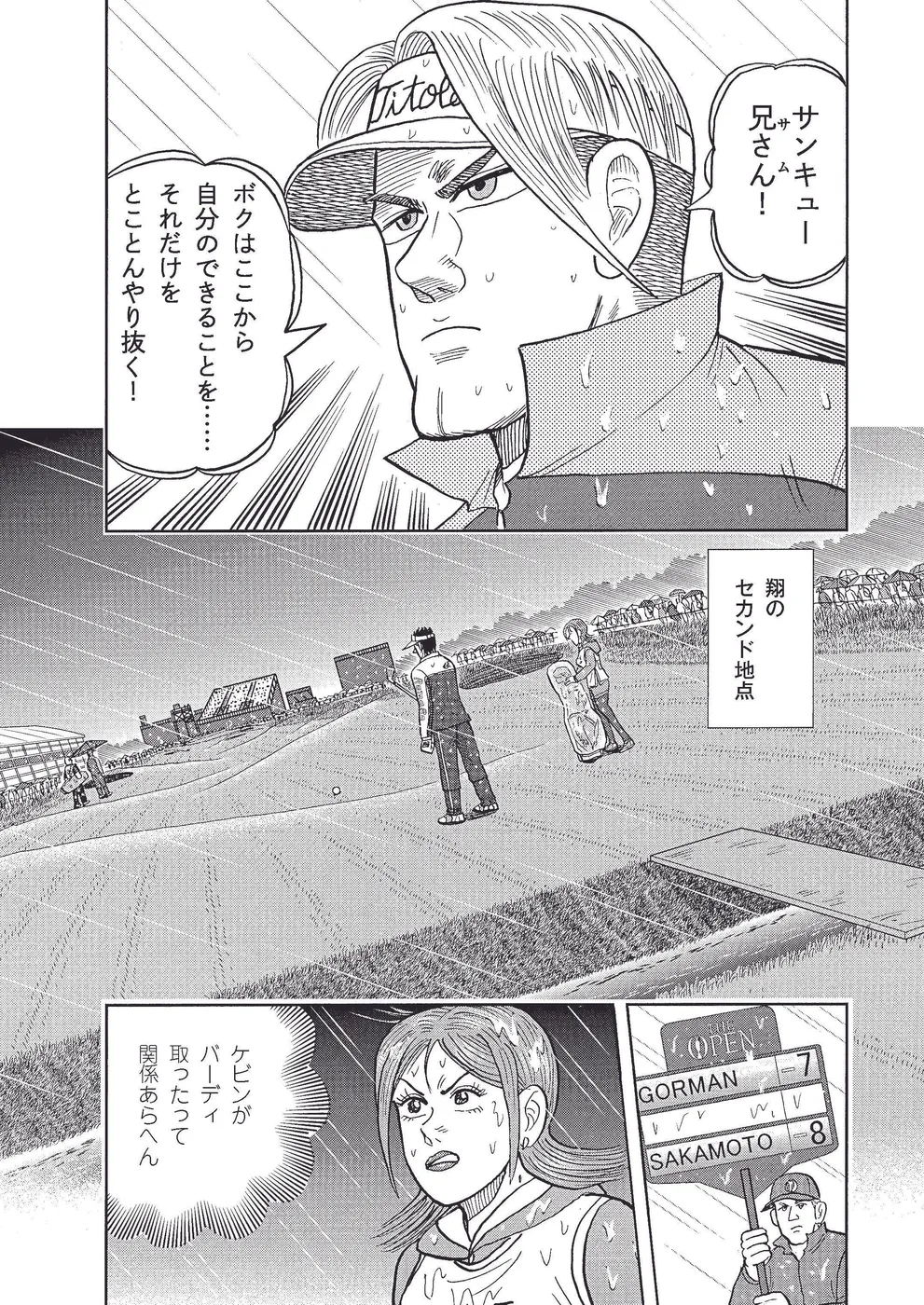 全英オープン初出場の坂本翔は、USPGAツアー期待の星、ケビン・ゴーマンと火花を散らす。。最終日、最終組でトップのケビンを追いかける翔だが、序盤は差が広がるばかり。翔は8番のホールインワンから反撃を開始し、14番パー3、15番パー4と連続バーディを奪って、ついに単独トップに躍り出た!