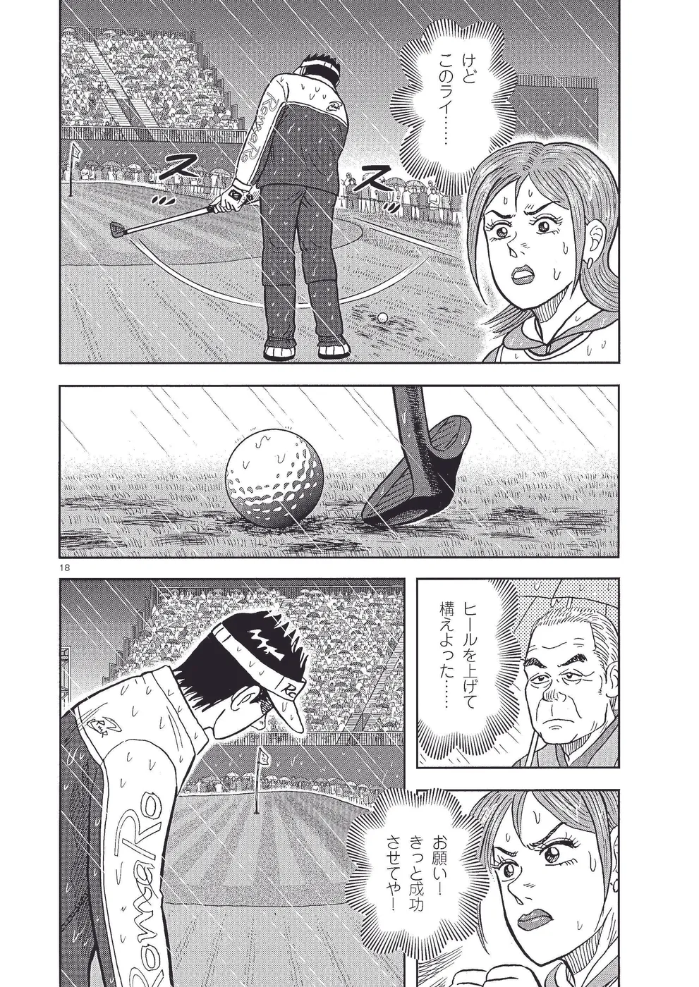 全英オープン初出場の坂本翔は、USPGAツアー期待の星、ケビン・ゴーマンと火花を散らす。最終日、最終組でトップのケビンを追いかける翔だが、序盤は差が広がるばかり。翔は8番のホールインワンから反撃を開始し単独トップに躍り出るが、16番パー5、バンカーからの3打目が脱出ならず一転ピンチに!