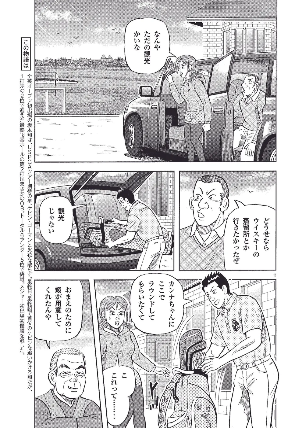 全英オープン初出場の坂本翔は、USPGAツアー期待の星、ケビン・ゴーマンと火花を散らす。最終日、最終組で首位のケビンを追いかける翔だが、1打差の2位で迎えた最終18番ホールの第2打はまさかのOB。トータル6アンダー5位で終戦。メジャー初出場初優勝を逃した。