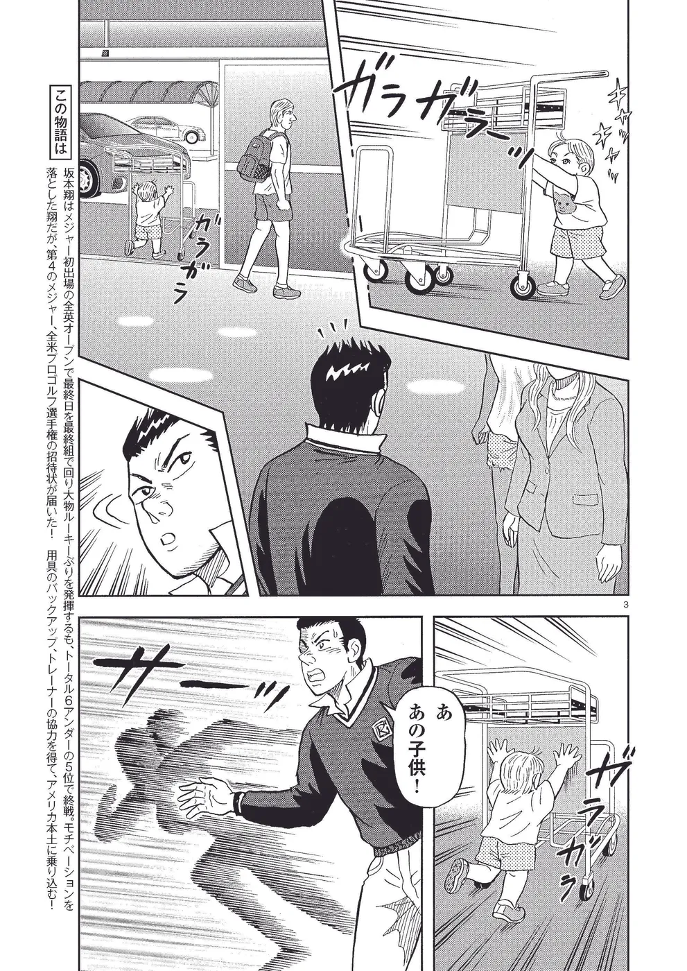 坂本翔はメジャー初出場の全英オープンで最終日を最終組で回り大物ルーキーぶりを発揮するも、トータル6アンダーの5位で終戦。モチベーションを落とした翔だが、第4のメジャー、全米プロゴルフ選手権の招待状が届いた! 用具のバックアップ、トレーナーの協力を得て、アメリカ本土に乗り込む!