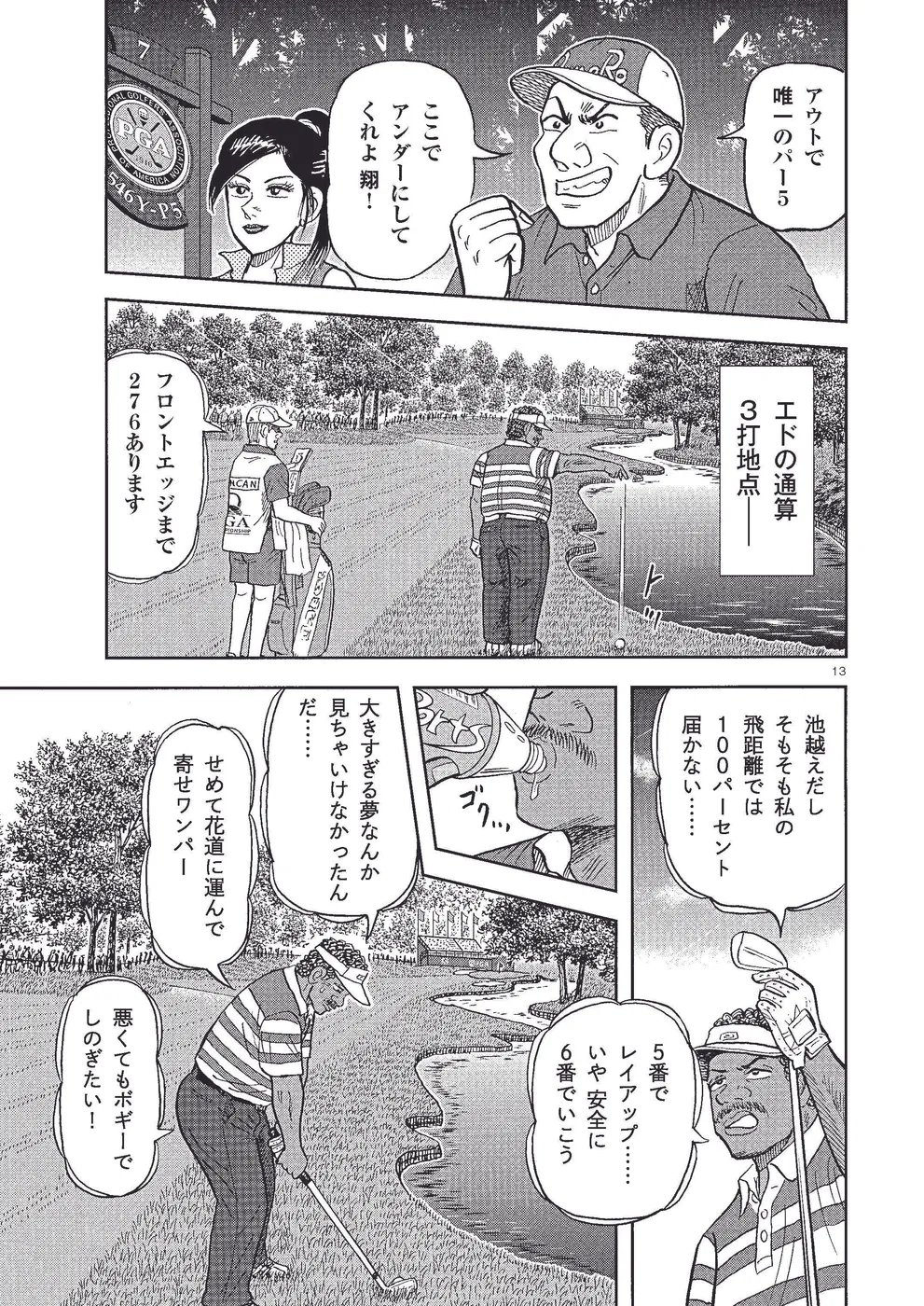 坂本翔は初出場の全英オープンで優勝争いに絡むも、5位で終戦。モチベーションを落とすが、第4のメジャー・全米プロゴルフ選手権の招待状が届きアメリカに乗り込む。翔は初日を翔の新キャディ・エマの父であるエド・ダンカンと同組でスタート。序盤の5ホールでパープレーを目指す翔だが……。