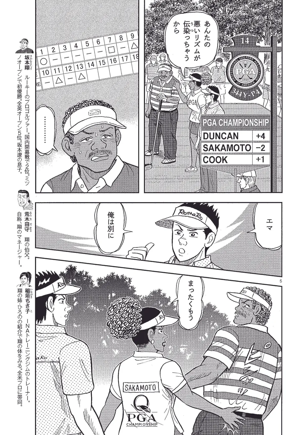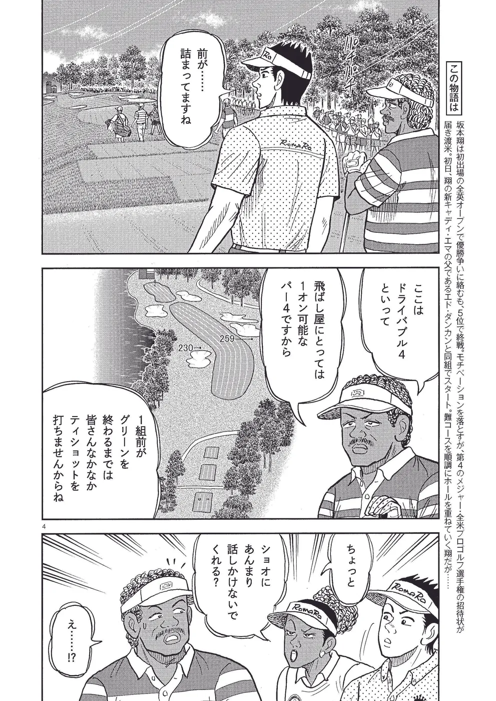 坂本翔は初出場の全英オープンで優勝争いに絡むも、5位で終戦。モチベーションを落とすが、第4のメジャー・全米プロゴルフ選手権の招待状が届き渡米。初日、翔の新キャディ・エマの父であるエド・ダンカンと同組でスタート。難コースを順調にホールを重ねていく翔だが……