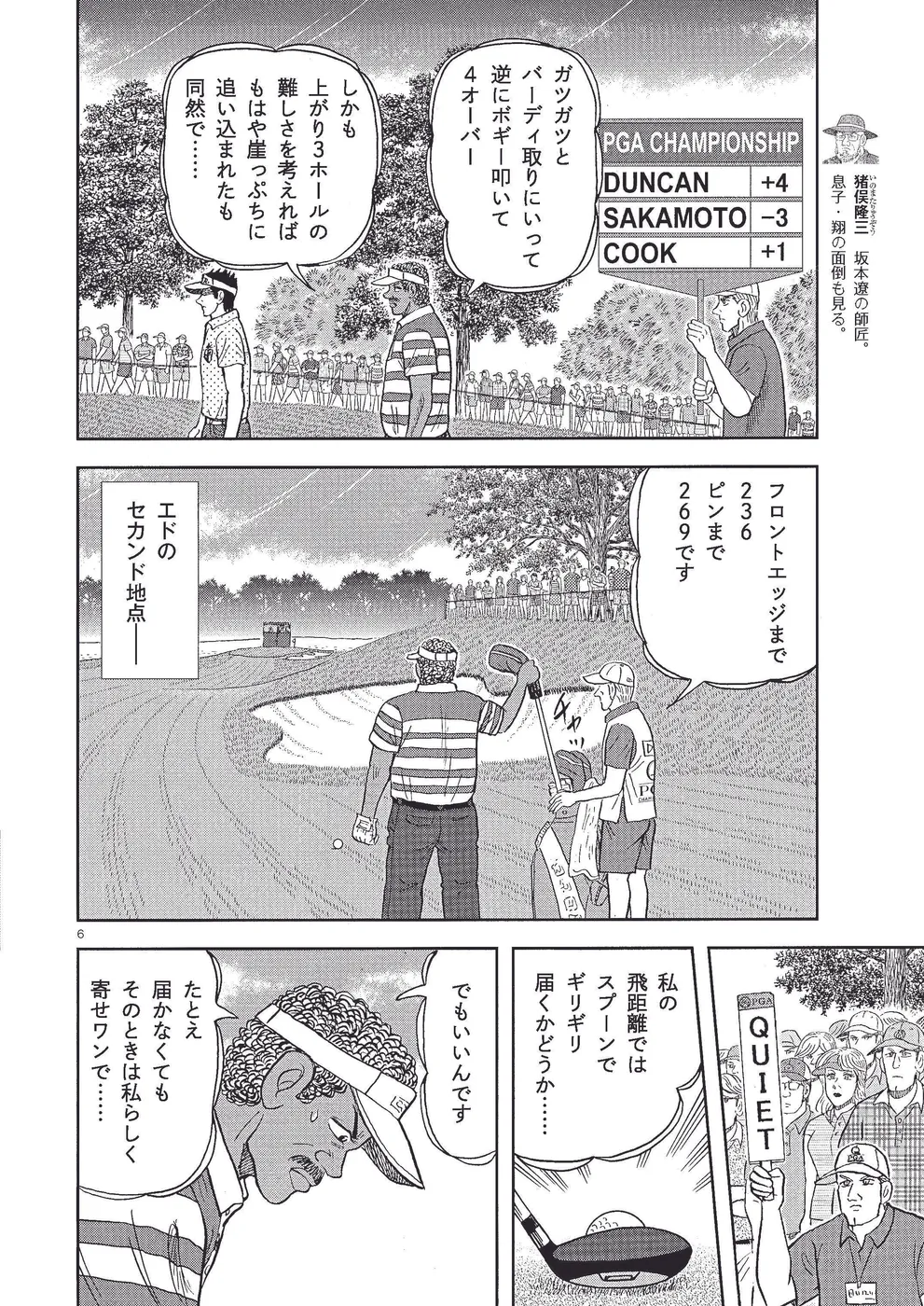 坂本翔は初出場の全英オープンで優勝争いに絡むも、5位で終戦。モチベーションを落とすが、全米プロゴルフ選手権の招待状が届き渡米する。初日、翔の新キャディ・エマの父であるエド・ダンカンと同組でスタート。難しい上がり3ホールの〝グリーンマイル〟にやって来た翔だが……。