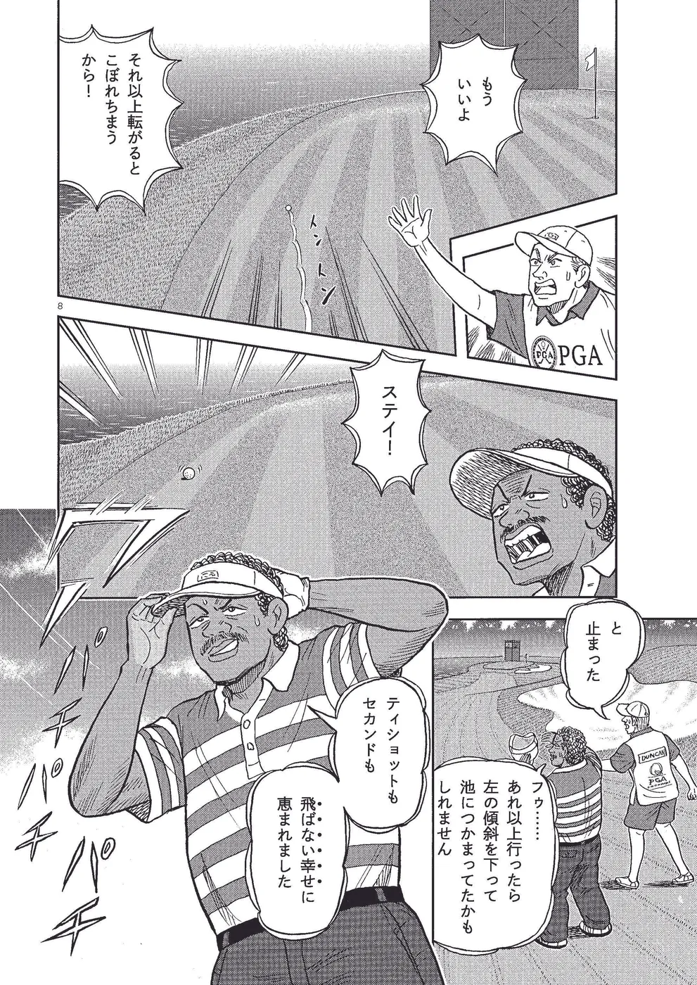 坂本翔は初出場の全英オープンで優勝争いに絡むも、5位で終戦。モチベーションを落とすが、全米プロゴルフ選手権の招待状が届き渡米する。初日、翔の新キャディ・エマの父であるエド・ダンカンと同組でスタート。難しい上がり3ホールの〝グリーンマイル〟にやって来た翔だが……。