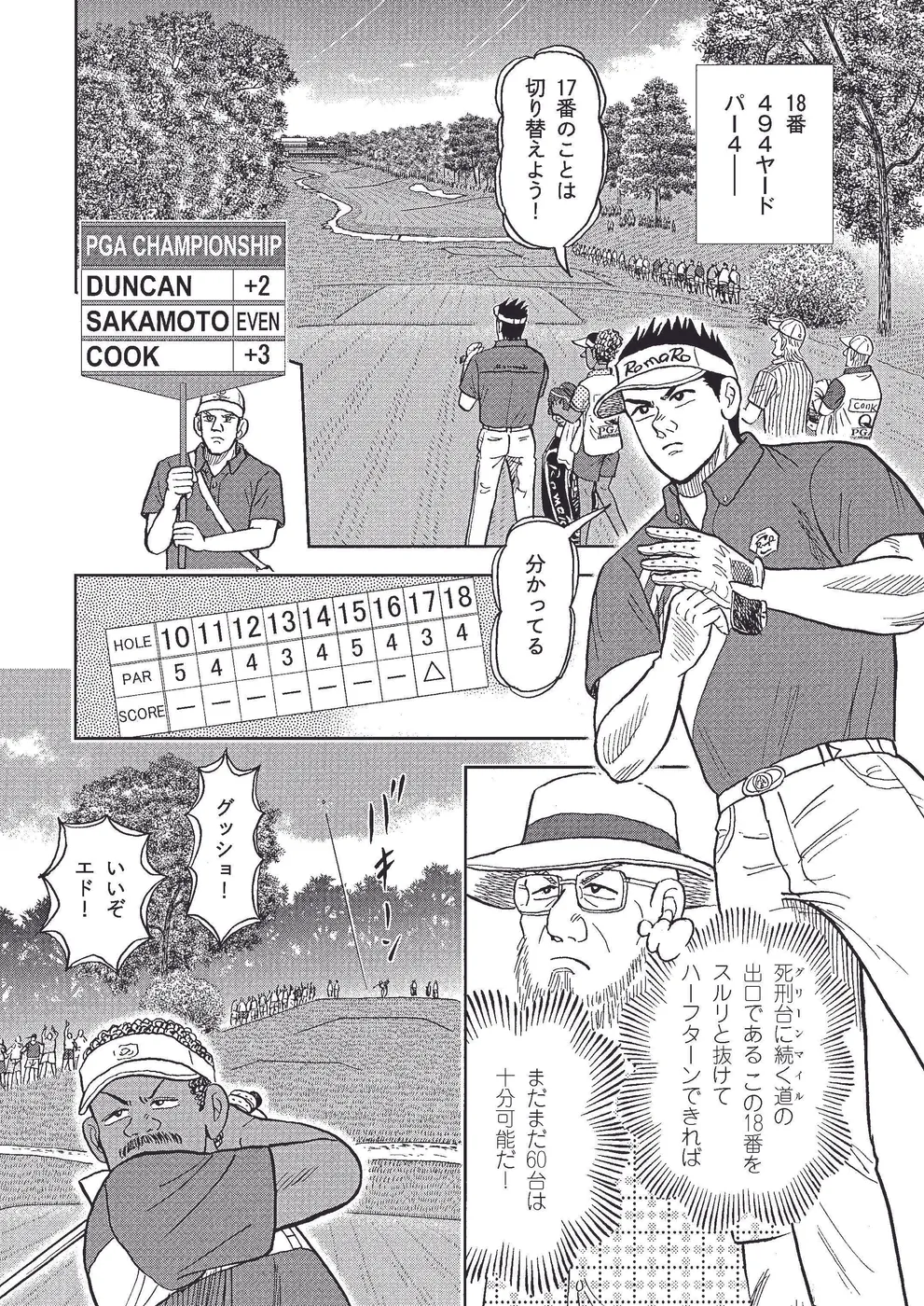 坂本翔は全英オープンでの活躍により、全米プロゴルフ選手権の招待状が届き、渡米する。初日、翔は難しい上がり3ホールの〝グリーンマイル〟でスコアを落とすも、何とか粘って1アンダーでフィニッシュ。単独トップのキングとは3打差につける。2日目スタート前にキングに60台を出せといわれるが……