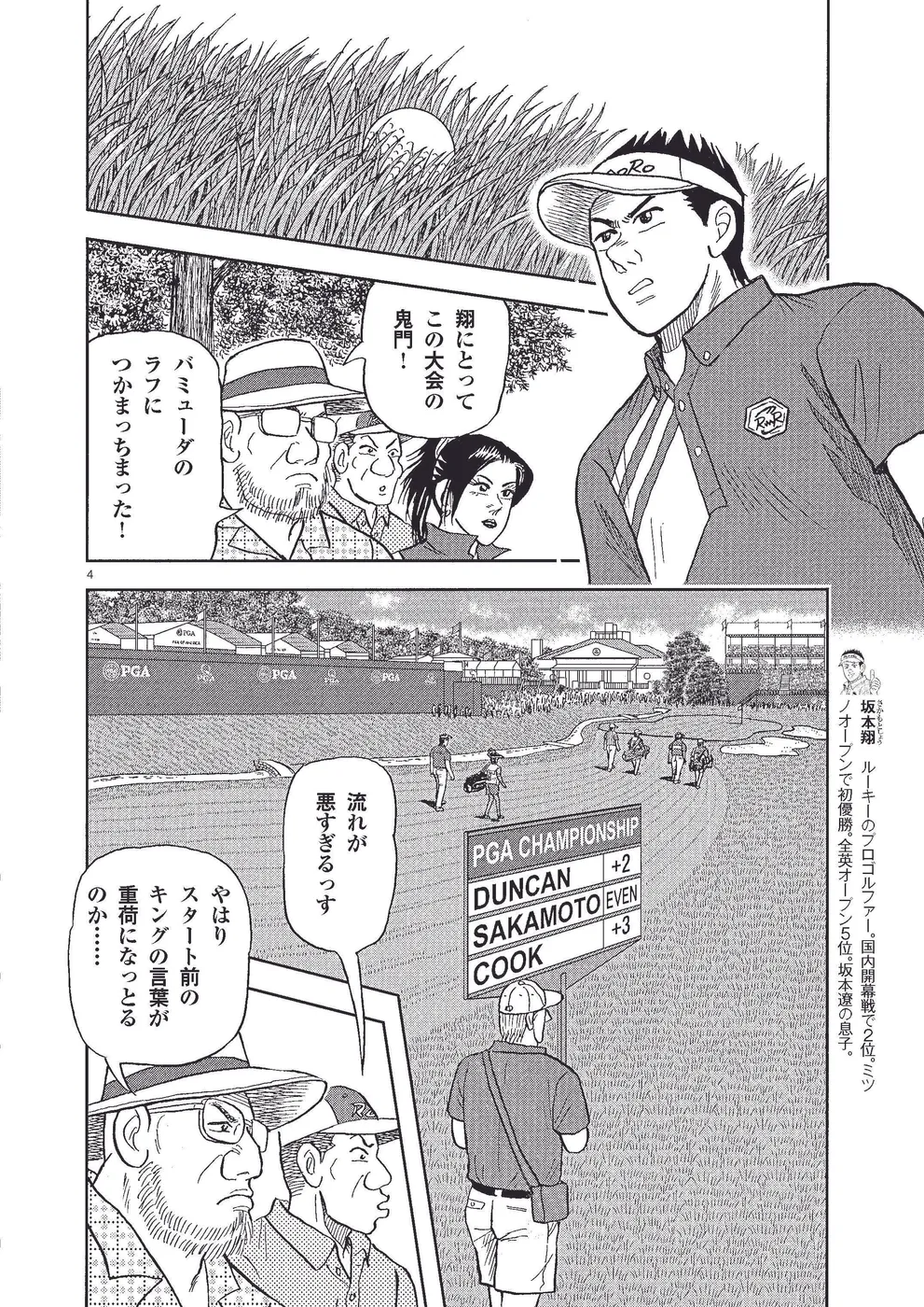 坂本翔は全英オープンでの活躍により、全米プロゴルフ選手権の招待状が届き、渡米する。初日、翔は難しい上がり3ホールの〝グリーンマイル〟でスコアを落とすも、何とか粘って1アンダーでフィニッシュ。単独トップのキングとは3打差につける。2日目スタート前にキングに60台を出せといわれるが……