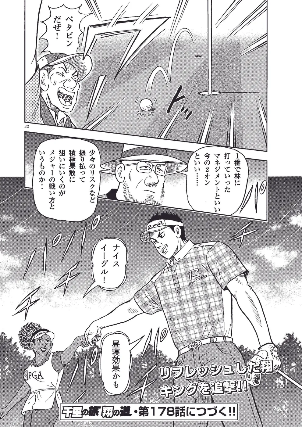 坂本翔は全英オープンでの活躍により、全米プロゴルフ選手権の招待状が届き、渡米する。初日、翔は難しい上がり3ホールの〝グリーンマイル〟でスコアを落とすも、何とか粘って1アンダーでフィニッシュ。単独トップのキングとは3打差につける。2日目スタート前にキングに60台を出せといわれるが……