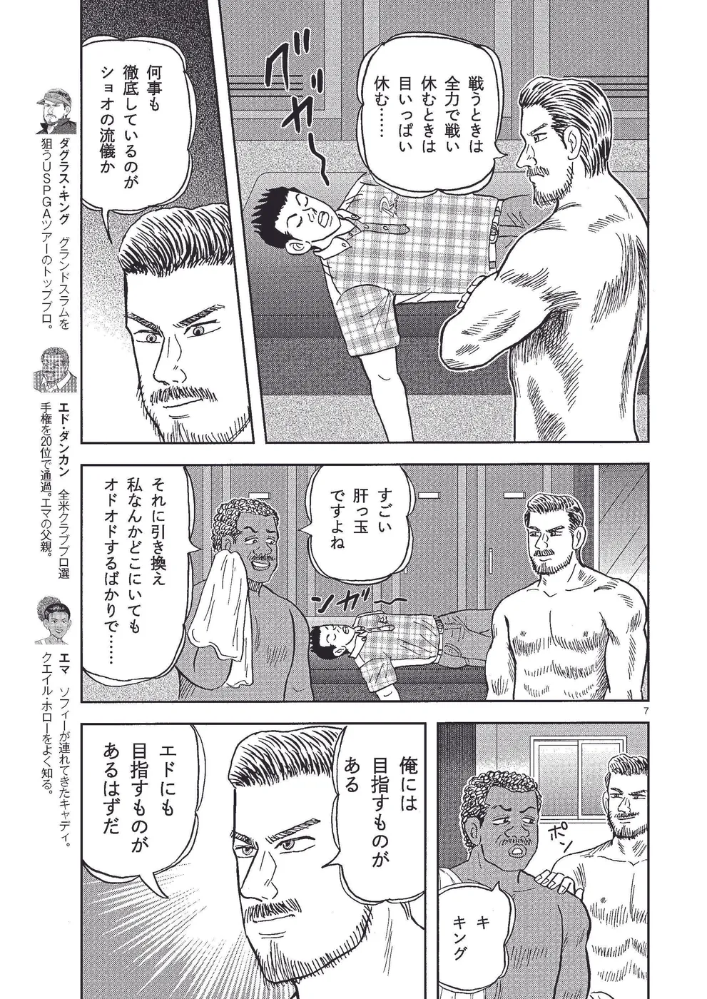坂本翔は全英オープンでの活躍により、全米プロゴルフ選手権の招待状が届き、渡米する。初日、翔は難しい上がり3ホールの〝グリーンマイル〟でスコアを落とすも、何とか粘って1アンダーでフィニッシュ。単独トップのキングとは3打差につける。2日目スタート前にキングに60台を出せといわれるが……