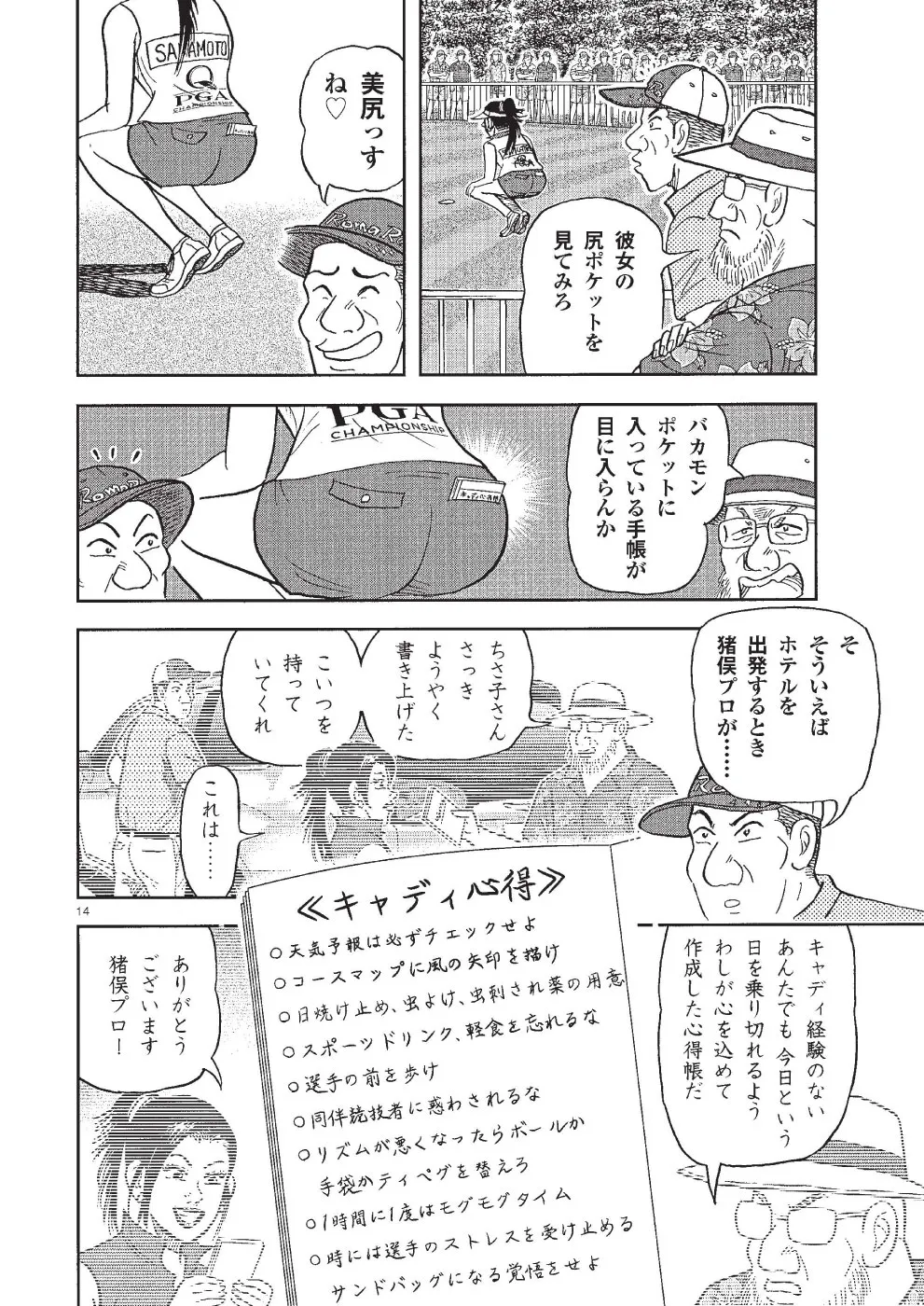 坂本翔は全米プロゴルフ選手権に出場。初日を1アンダー終えた翔は、2日目は尻上がりに調子を上げ、首位のキングと5打差ながら2位タイで予選突破。翔はキャディのエマを、ギリギリで予選通過したエドのキャディにすべく、コンビ解消を通告。トレーナーのちさ子にキャディをお願いして3日目に臨む!