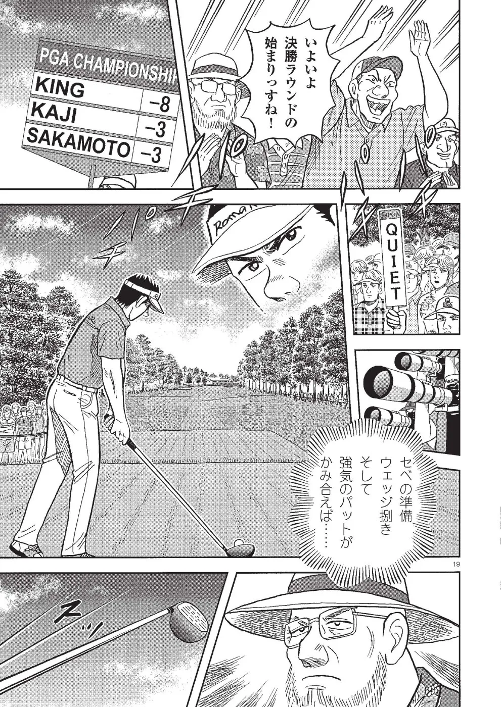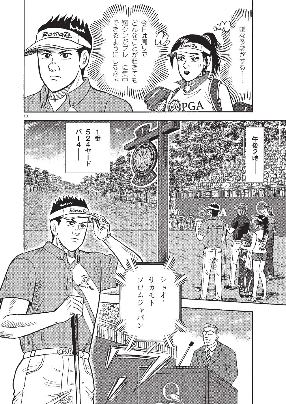 坂本翔は全米プロゴルフ選手権に出場。初日を1アンダー終えた翔は、2日目は尻上がりに調子を上げ、首位のキングと5打差ながら2位タイで予選突破。翔はキャディのエマを、ギリギリで予選通過したエドのキャディにすべく、コンビ解消を通告。トレーナーのちさ子にキャディをお願いして3日目に臨む!