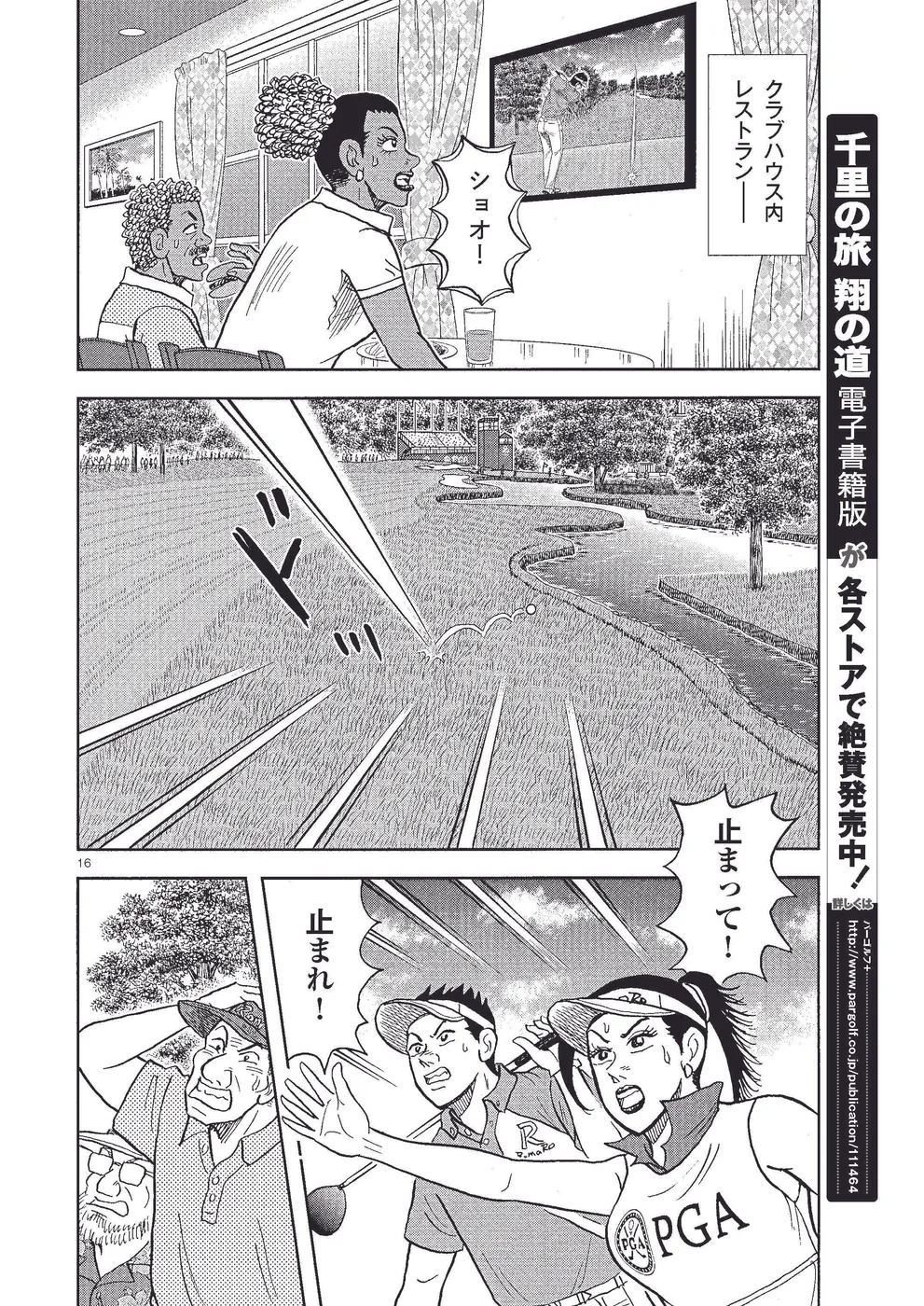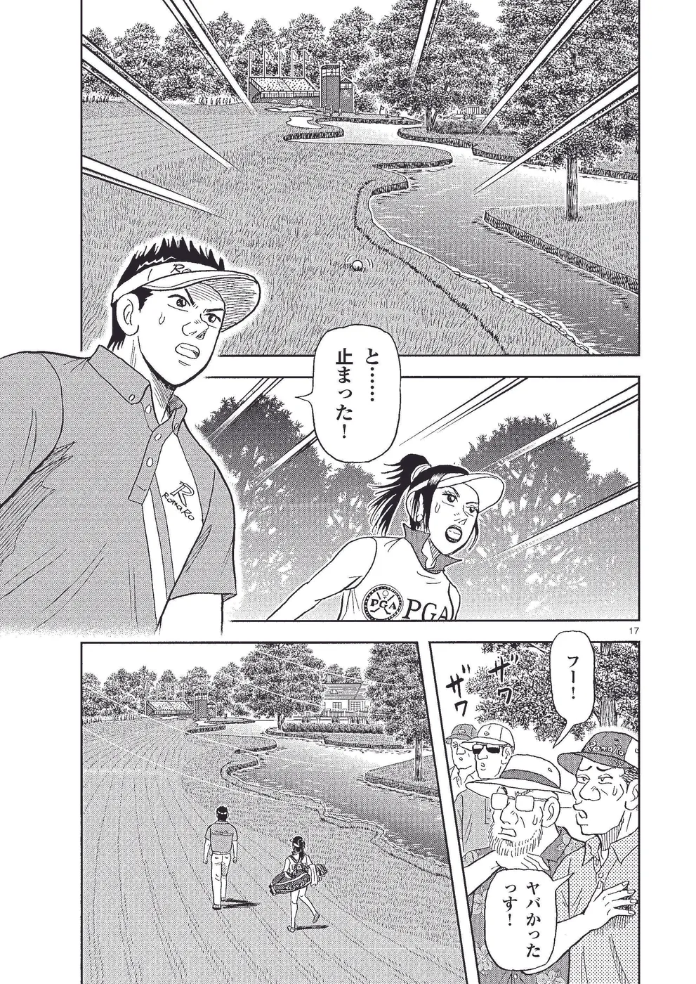 坂本翔は全米プロゴルフ選手権に出場。翔は2日目、尻上がりに調子を上げ、首位のキングと5打差ながら2位タイで予選突破。翔はエマを、ギリギリで予選を通過したエドのキャディにすべくコンビ解消して、ちさ子を新キャディに。3日目は首位のキングと2位タイの梶と翔とでスリーサム。三つどもえの戦いが幕を開けた!