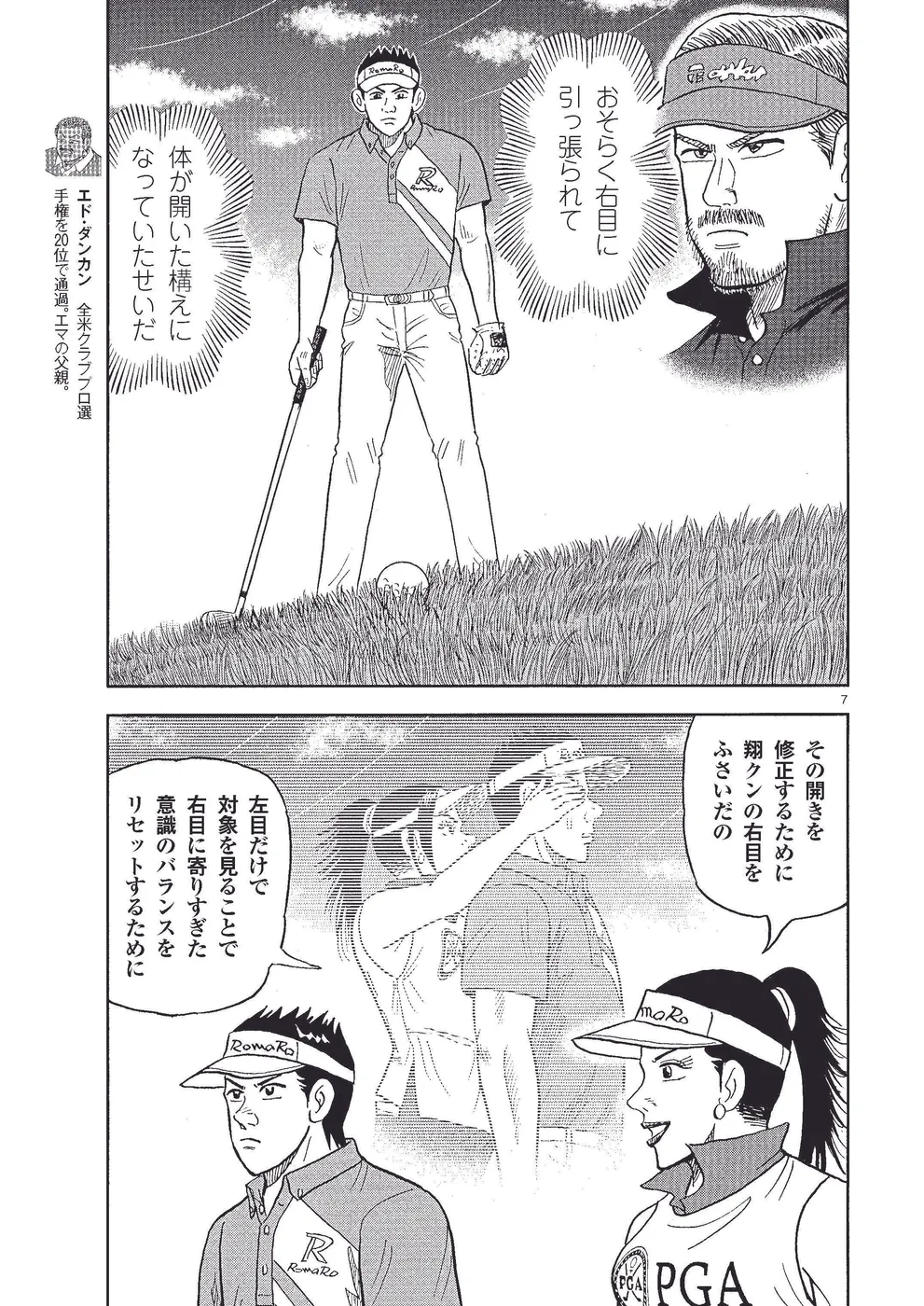 坂本翔は全米プロゴルフ選手権に出場。翔は2日目、尻上がりに調子を上げ、首位のキングと5打差ながら2位タイで予選突破。翔はエマを、ギリギリで予選を通過したエドのキャディにすべくコンビ解消して、ちさ子を新キャディに。3日目は首位のキングと2位タイの梶と翔とでスリーサム。キングに肉薄なるか!?