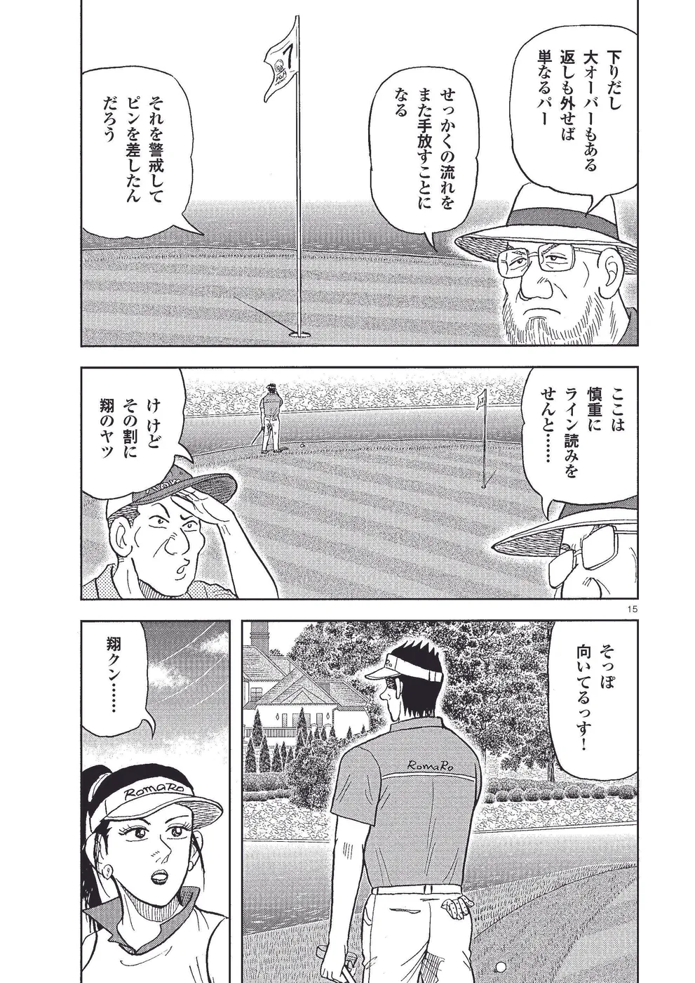 坂本翔は全米プロゴルフ選手権に出場。翔は2日目、尻上がりに調子を上げ、首位のキングと5打差ながら2位タイで予選突破。翔はエマを、ギリギリで予選を通過したエドのキャディにすべくコンビ解消して、ちさ子を新キャディに。3日目は首位のキングと2位タイの梶と翔とでスリーサム。キングに肉薄なるか!?