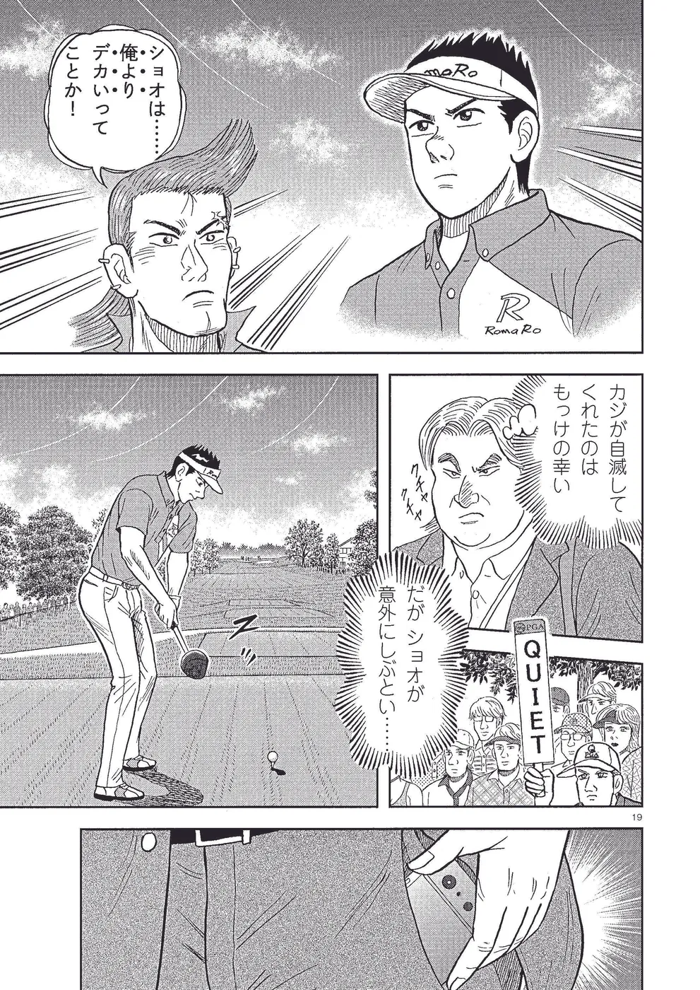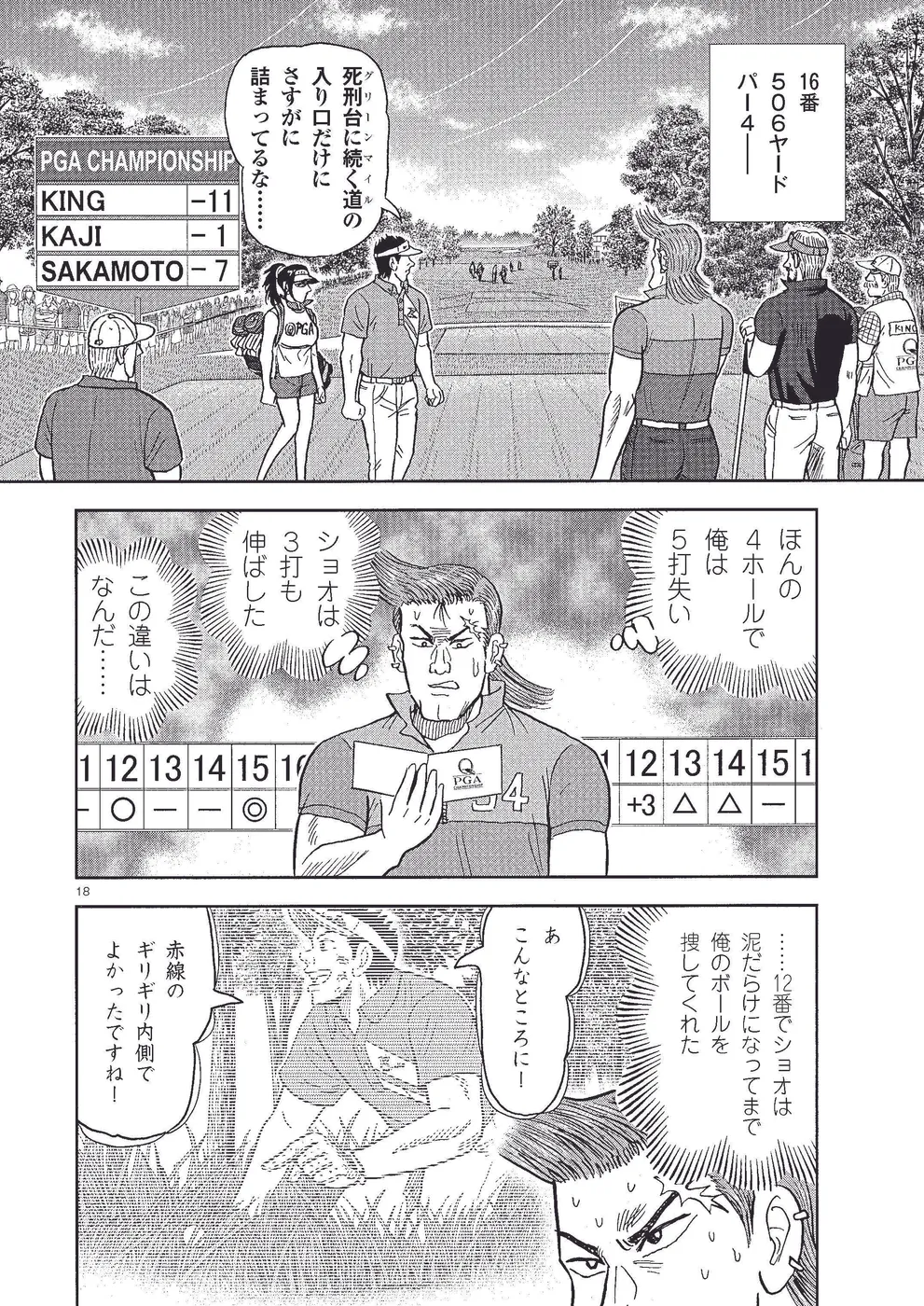 坂本翔は全米プロゴルフ選手権に出場。翔は2日目、尻上がりに調子を上げ、首位のキングと5打差ながら2位タイで予選突破。翔はエマを、ギリギリで予選を通過したエドのキャディにすべくコンビ解消して、ちさ子を新キャディに。3日目は首位のキングと2位タイの梶と翔とでスリーサム。キングに肉薄なるか!?
