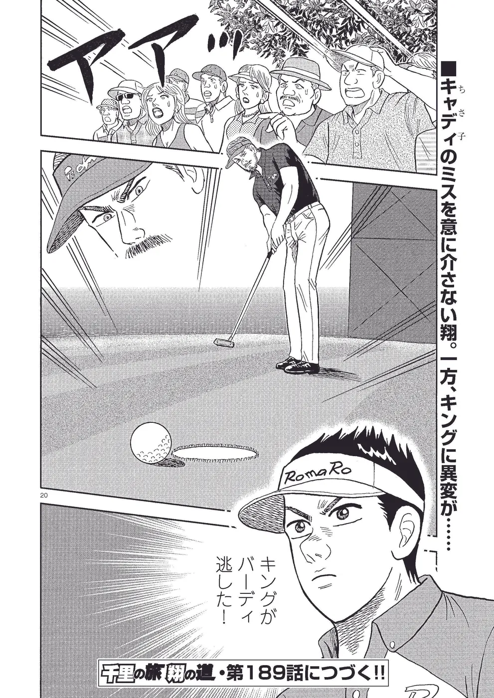坂本翔は全米プロゴルフ選手権に出場。翔は2日目、尻上がりに調子を上げ、首位のキングと5打差ながら2位タイで予選突破。翔はエマを、ギリギリで予選を通過したエドのキャディにすべくコンビ解消して、ちさ子を新キャディに。3日目は首位のキングと2位タイの梶と翔とでスリーサム。キングに肉薄なるか!?