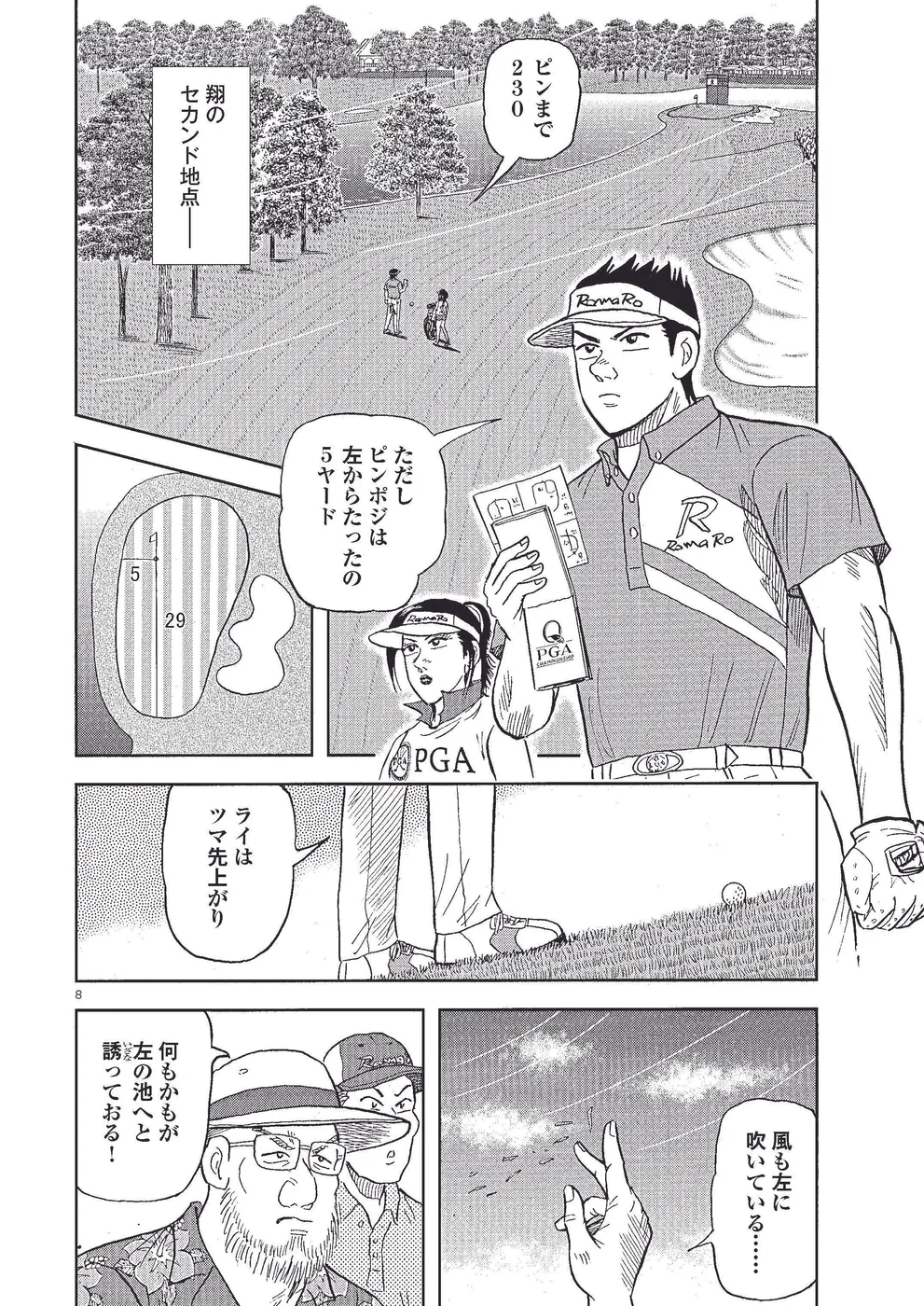坂本翔は全米プロゴルフ選手権に出場。翔は2日目、尻上がりに調子を上げ、首位のキングと5打差ながら2位タイで予選突破。翔はエマを、ギリギリで予選を通過したエドのキャディにすべくコンビ解消して、ちさ子を新キャディに。3日目は首位のキングと2位タイの梶と翔とでスリーサム。キングに肉薄なるか!?